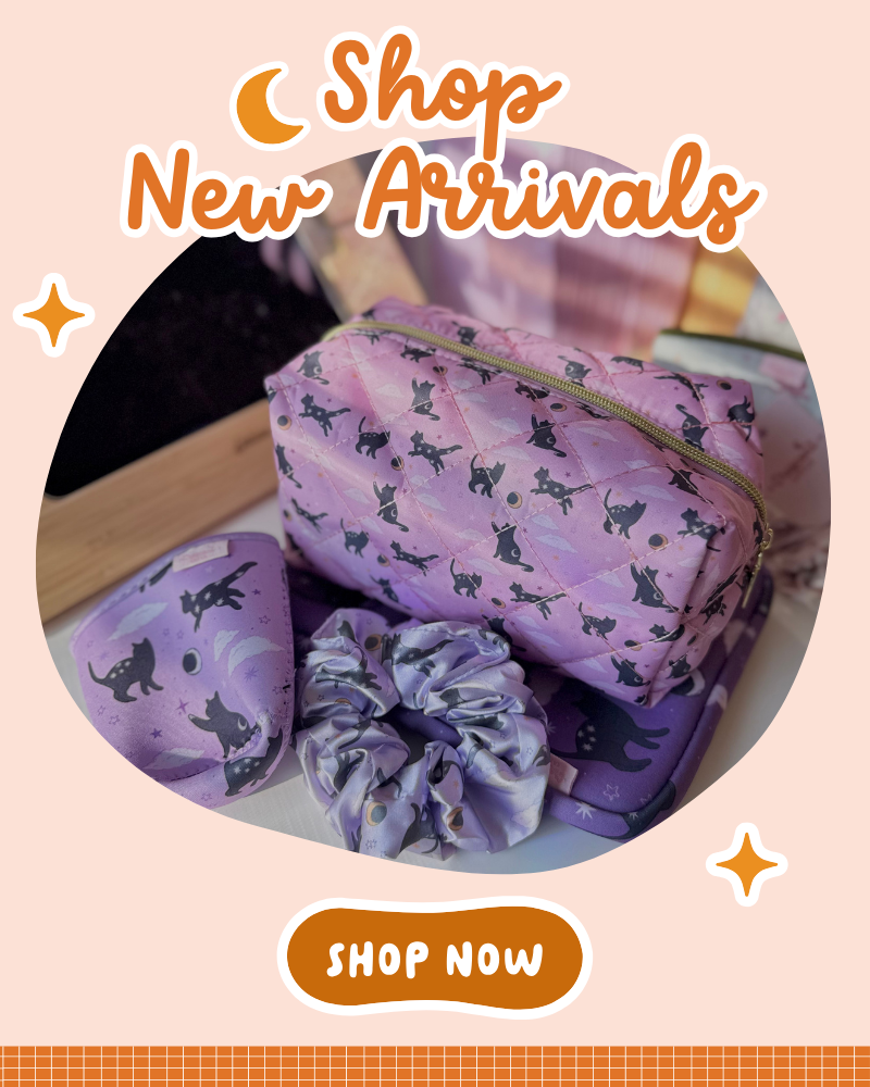 I am the proud owner of Crescent Cat Co! I make items inspired by my fave fandom, books, and a little spooky magic. All items are designed by me or in collaboration by other amazing small artists.