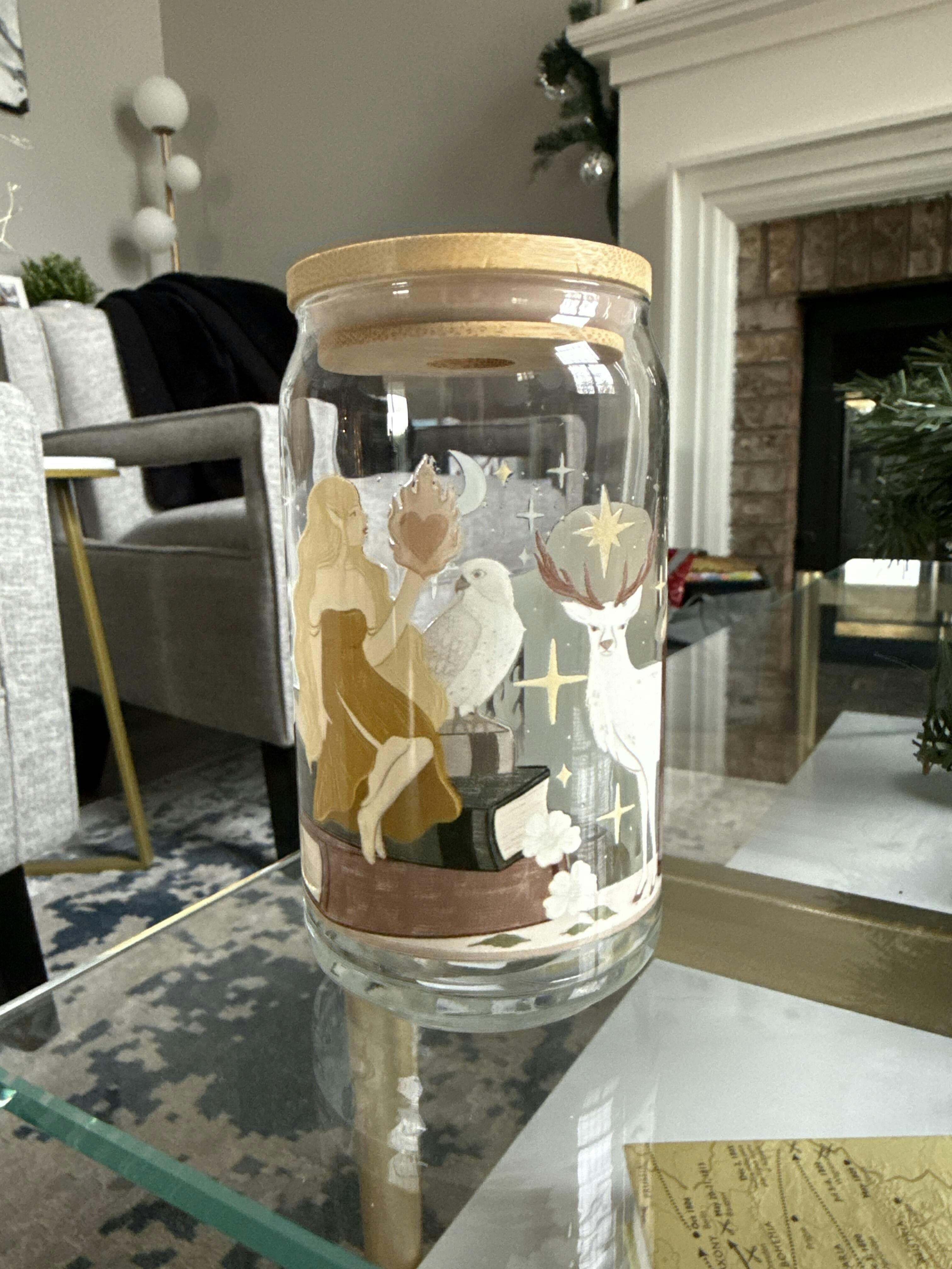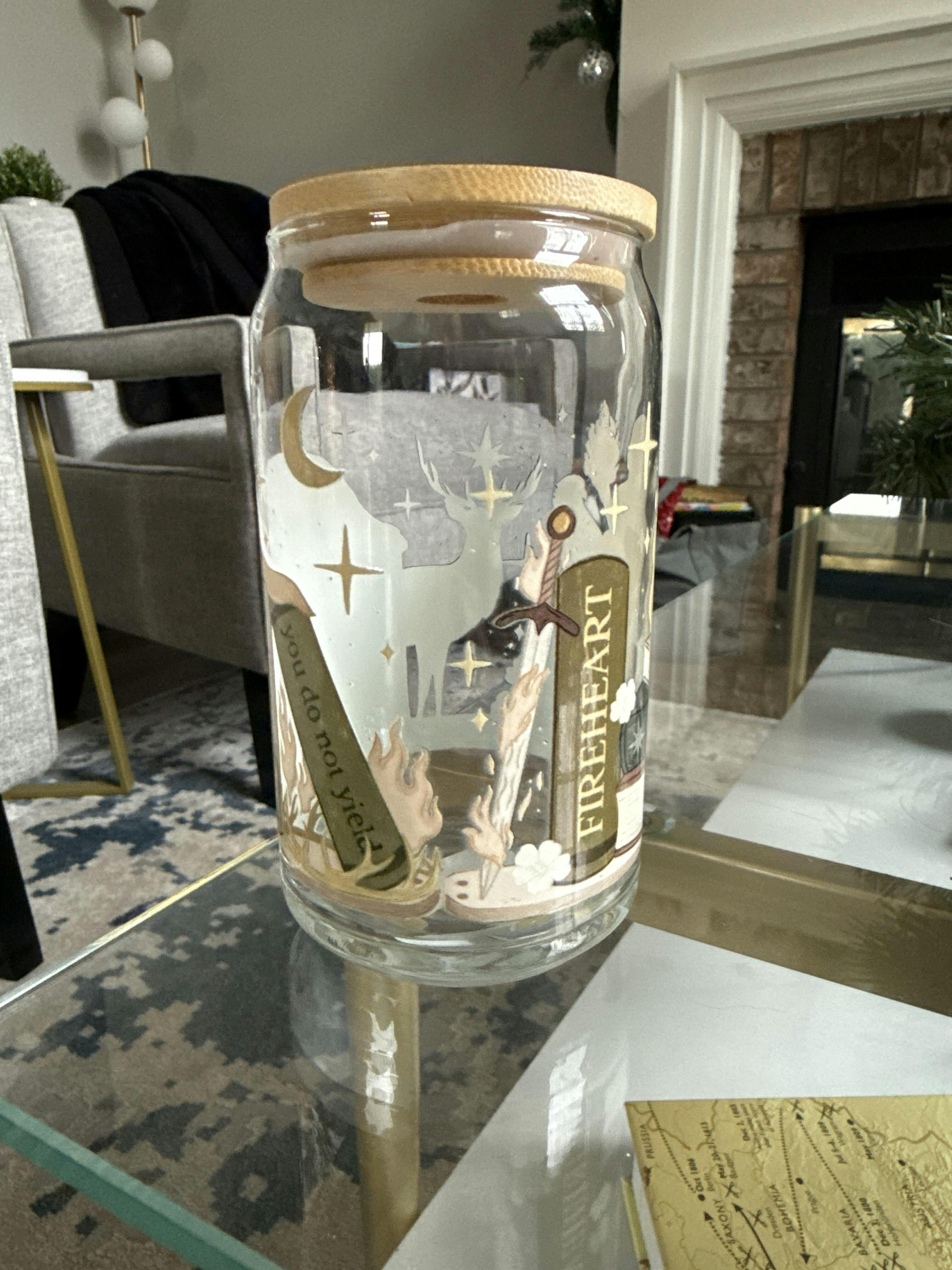 Aelin TOG Iced Coffee Glass, SJM Fan Gift, Fantasy Reader Coffee Tumbler, Lid and Straw, Terrasen Fireheart, White Stag Lord of the North