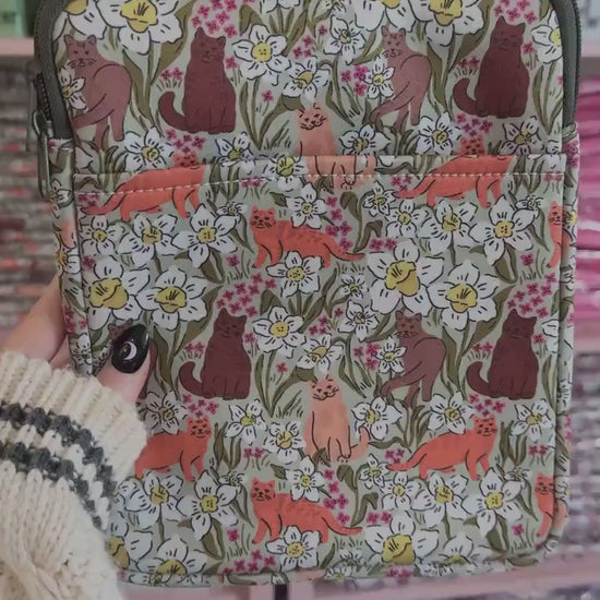 Kitties & Florals Book & Kindle Pouch, Zipper & Pocket ( Medium)