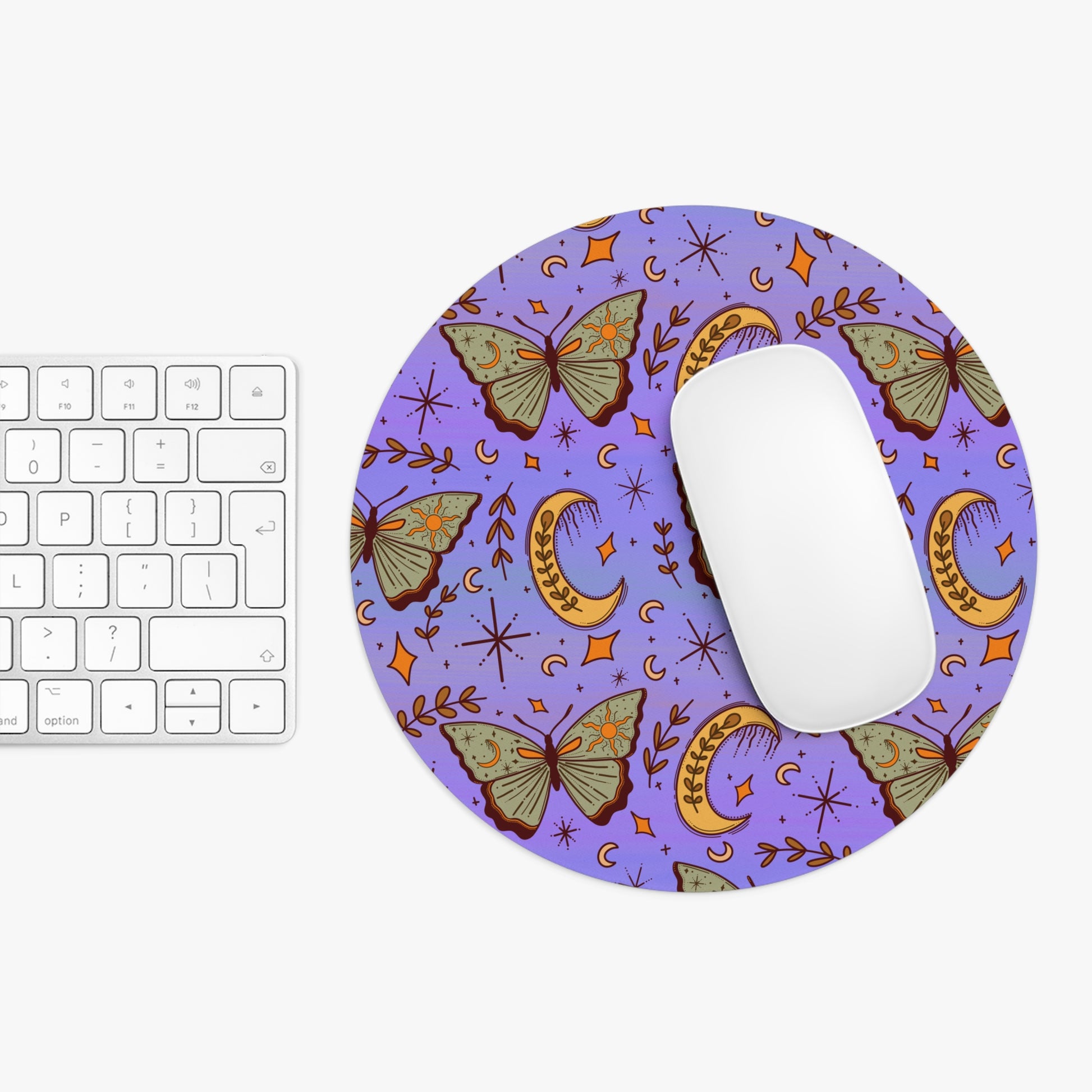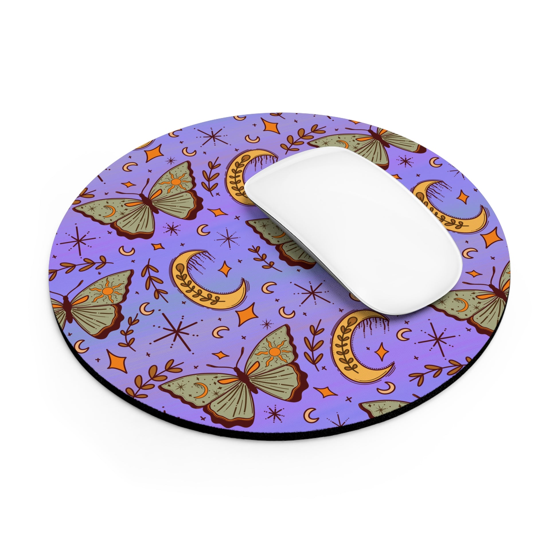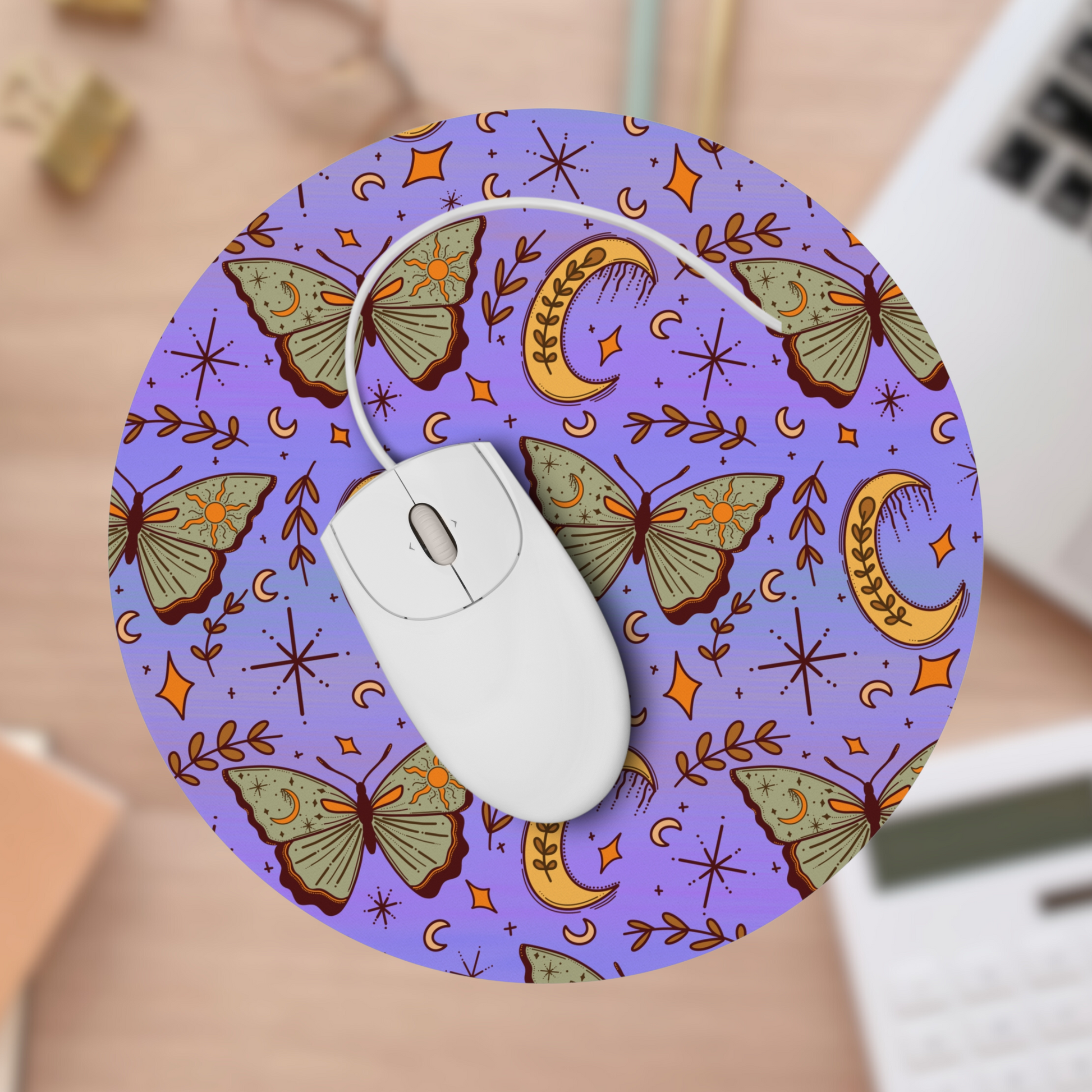 Whimsical Cottagecore Mouse Pad | Butterfly and Moon Desk Accessory