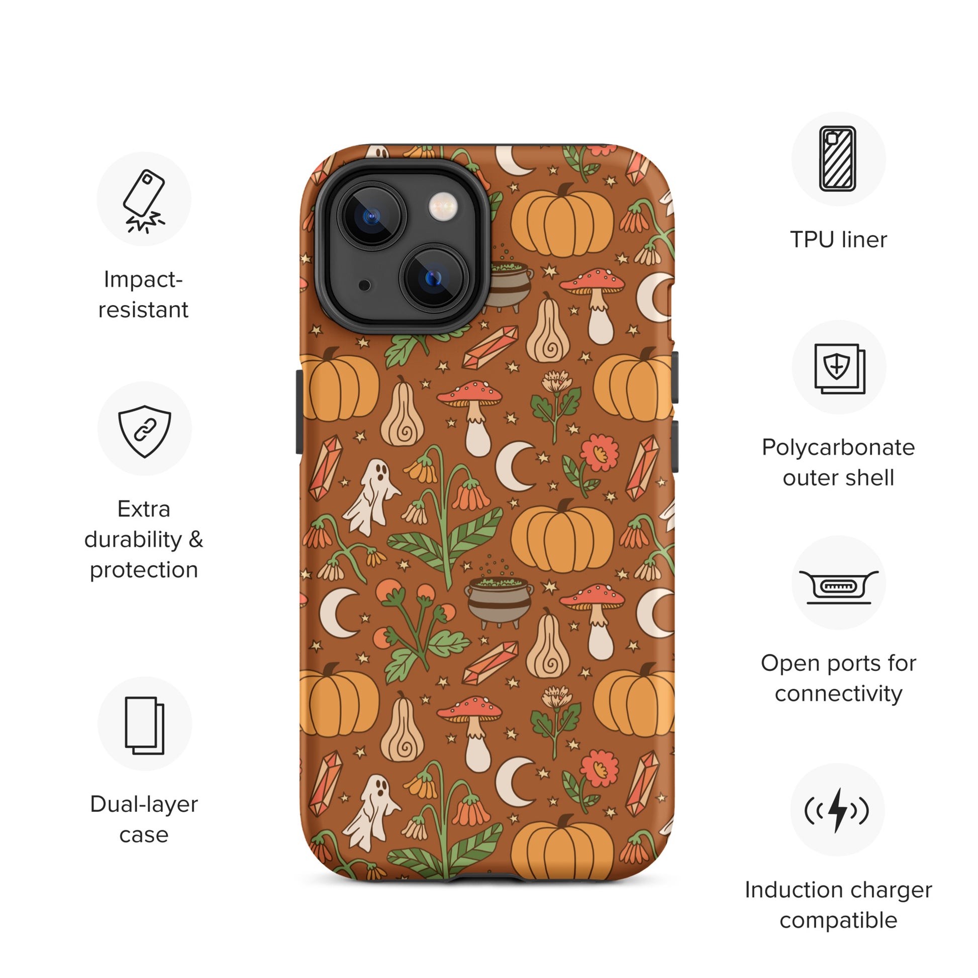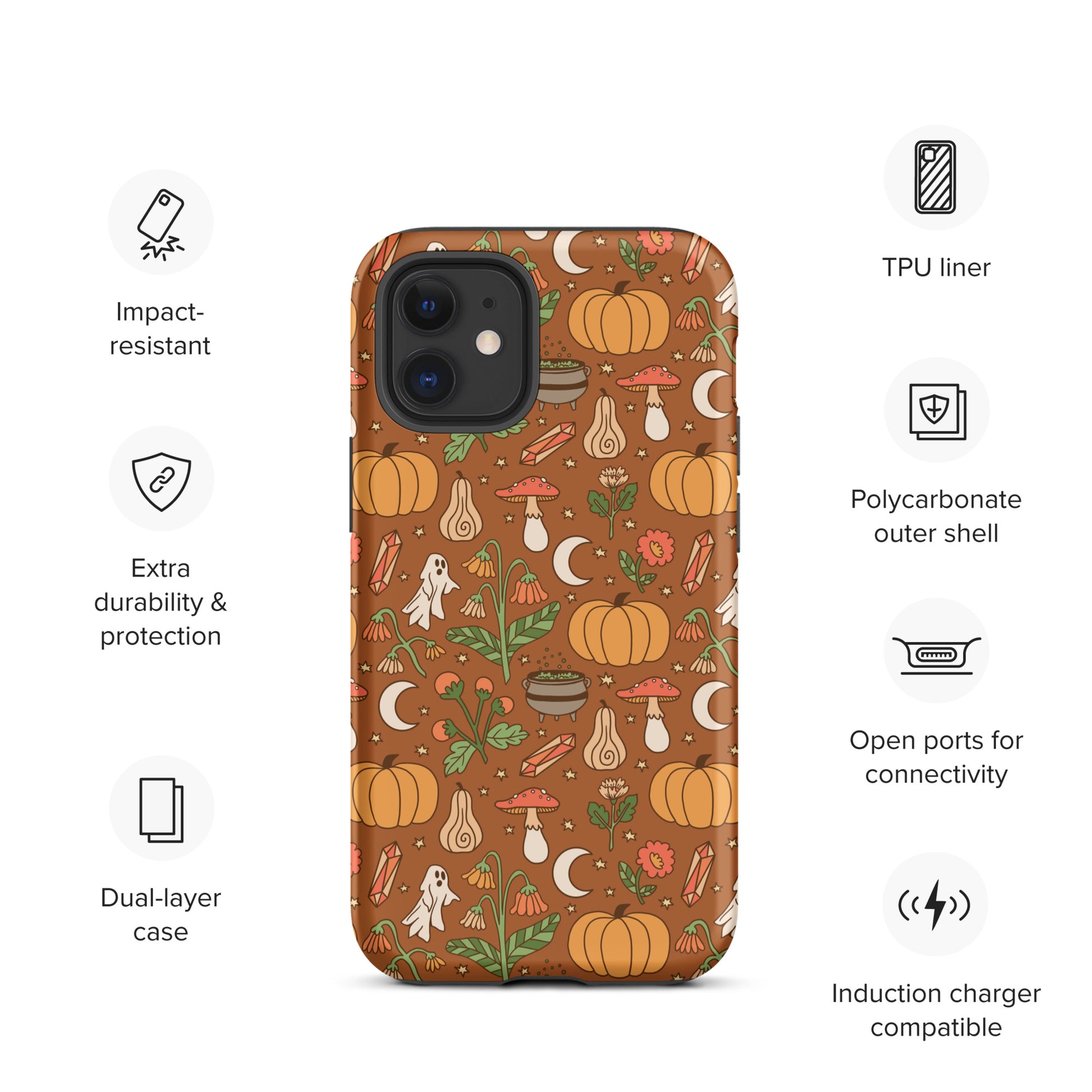 Add some fall fun to your phone with this cozy autumn ghost and Hot Coco tough case! Protect your iPhone while showing off your spooky side. Perfect for fall lovers and those who love a touch of spookiness in their daily lives.