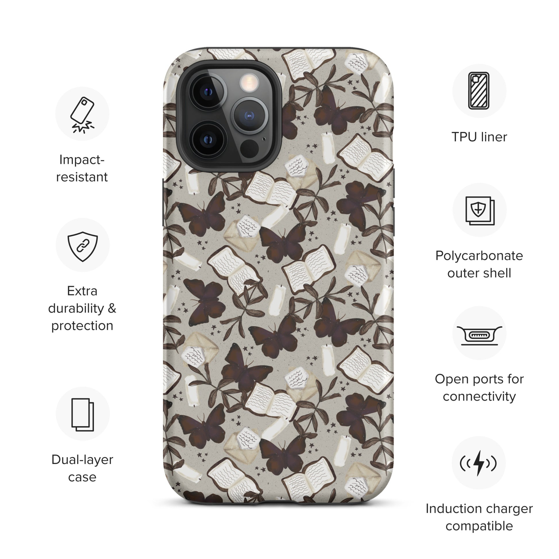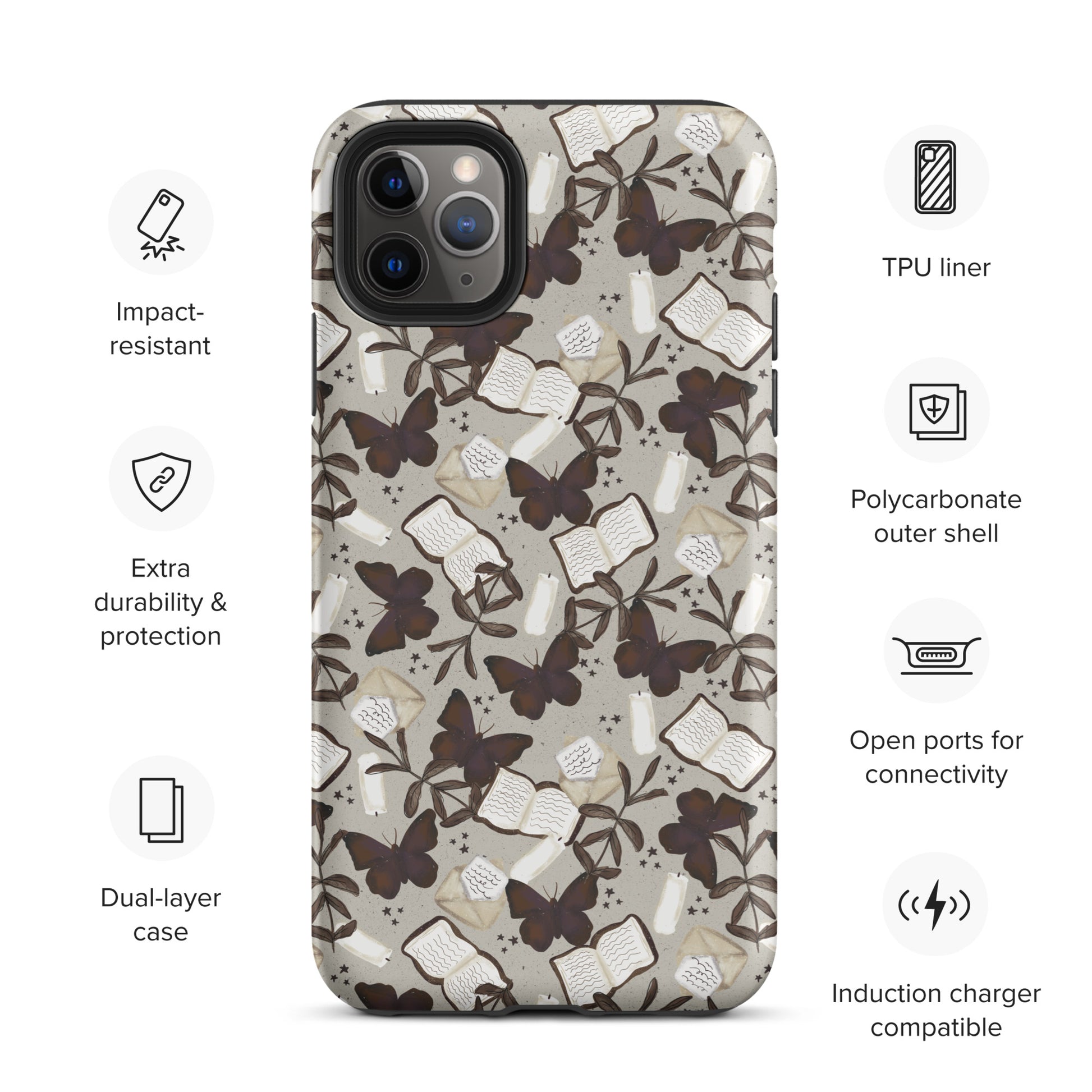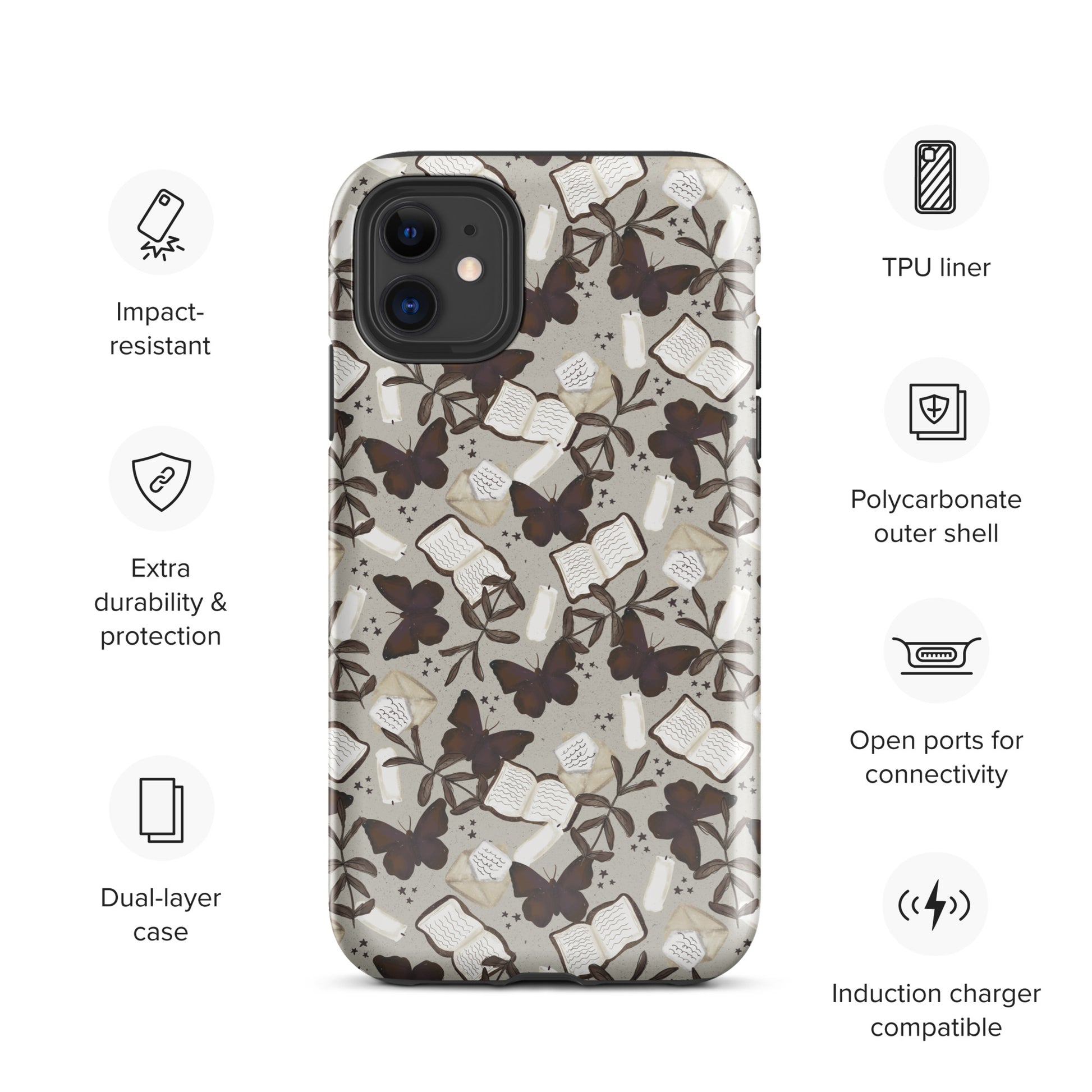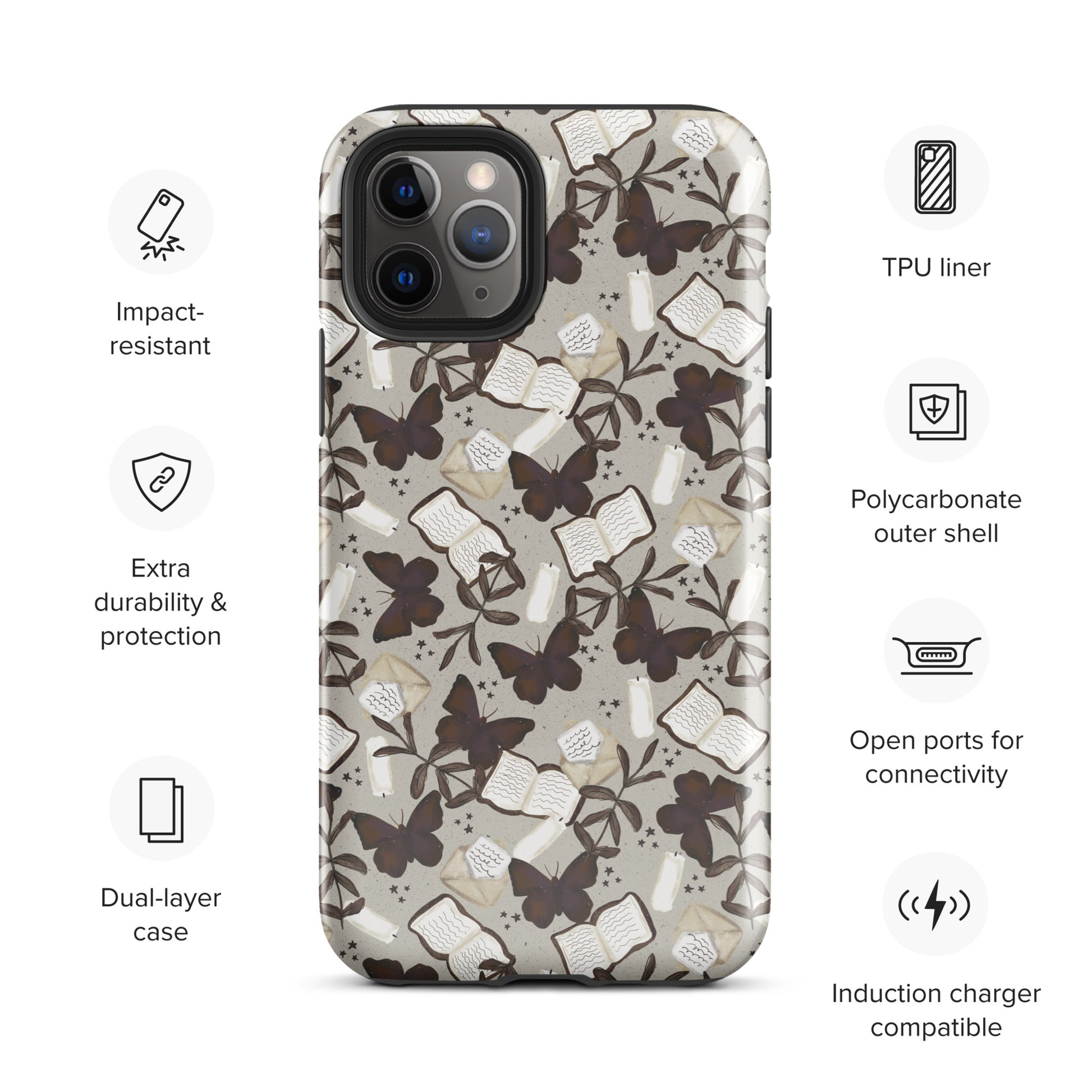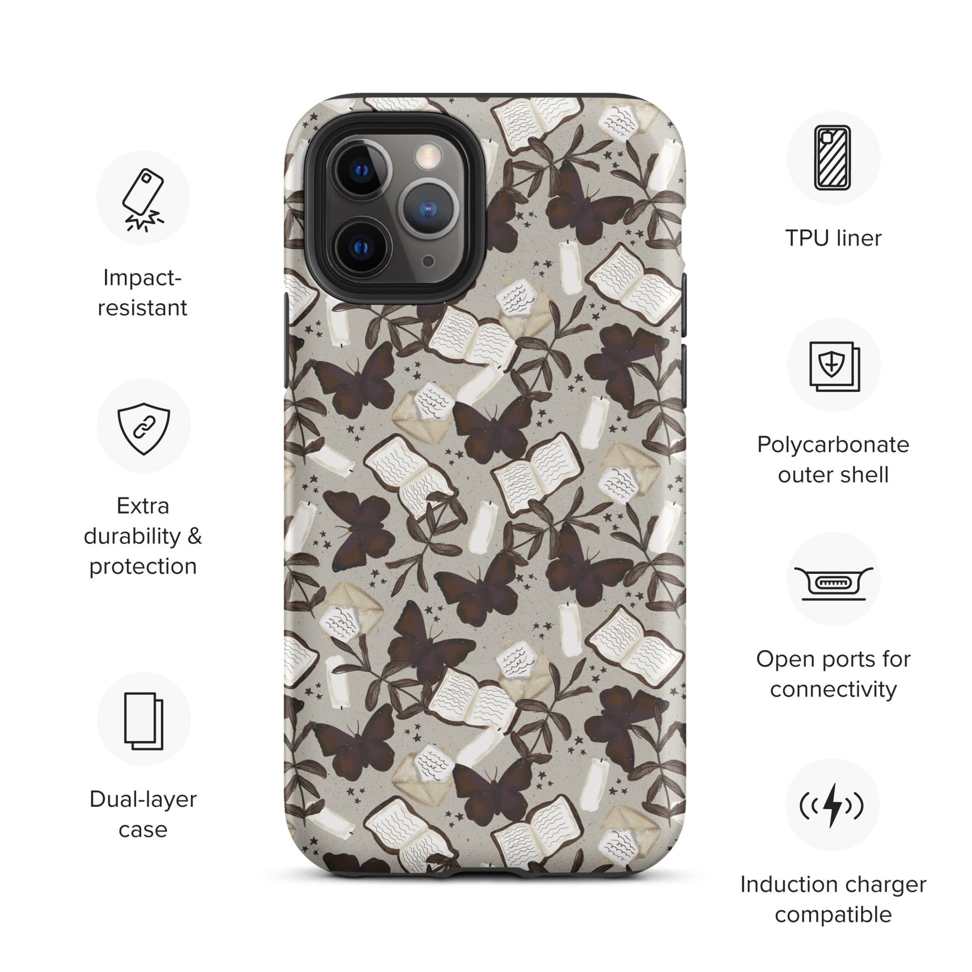 Add some fall fun to your phone with this cozy dark academia Iphone case! Protect your iPhone while showing off your spooky side. Perfect for book lovers and those who love a touch of spookiness in their daily lives.