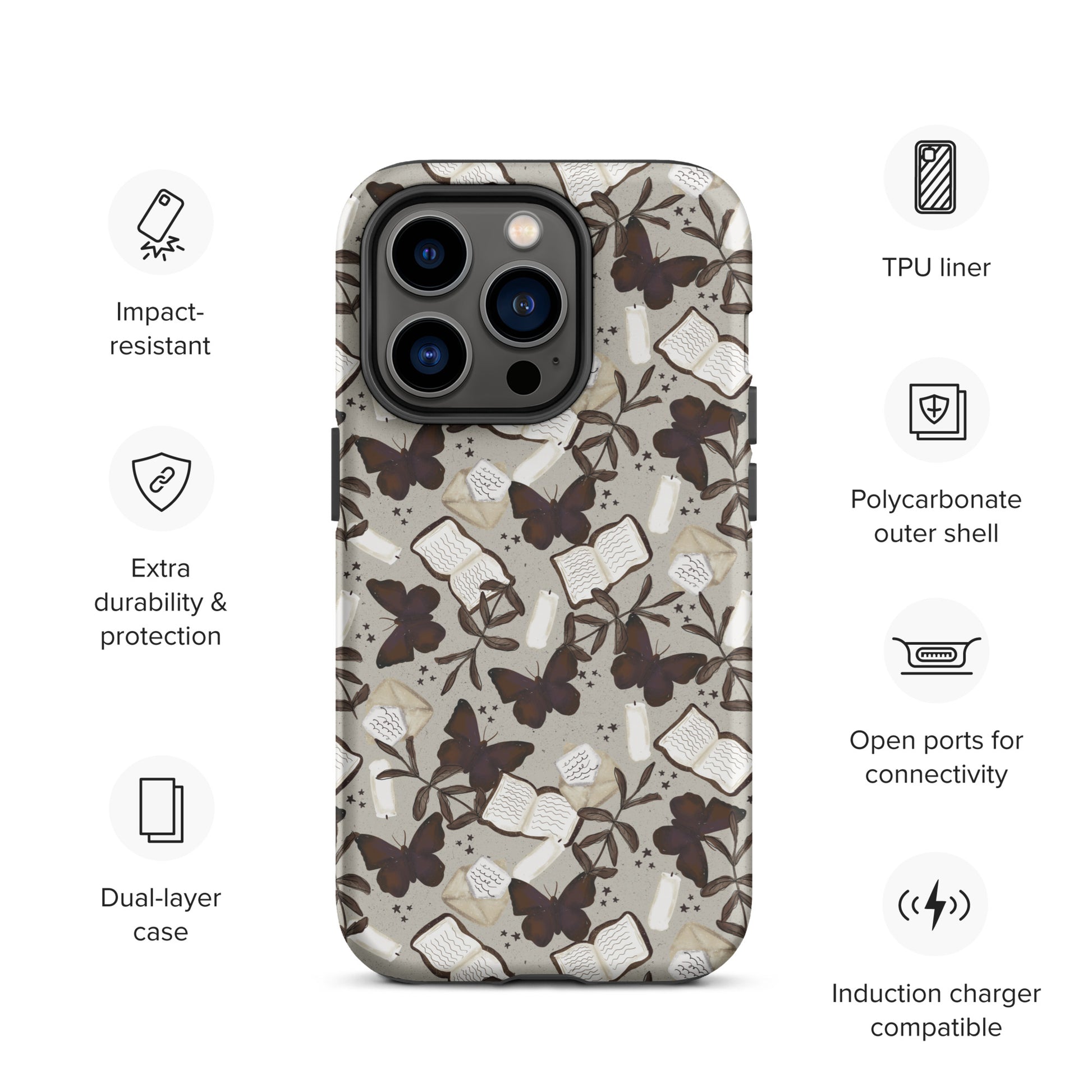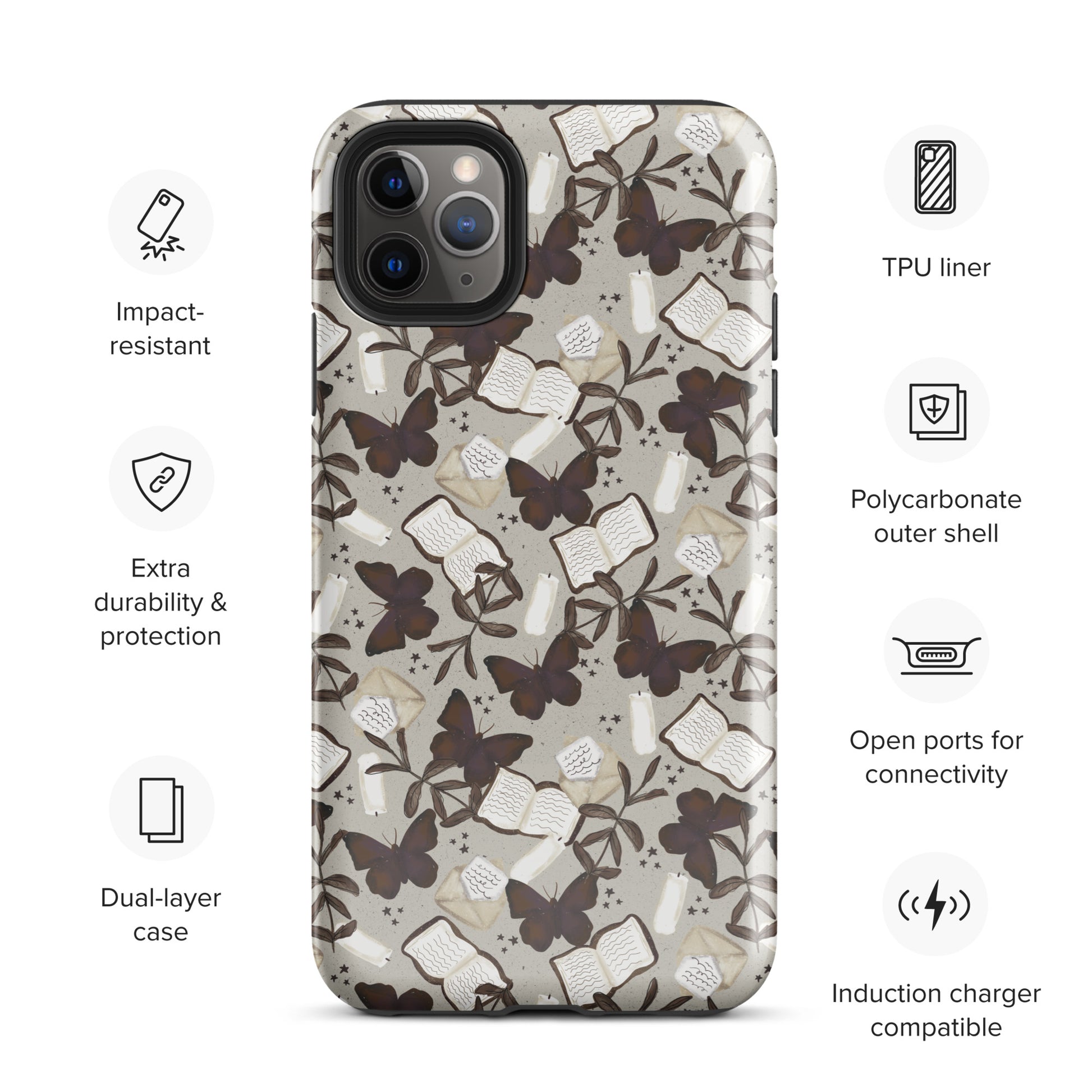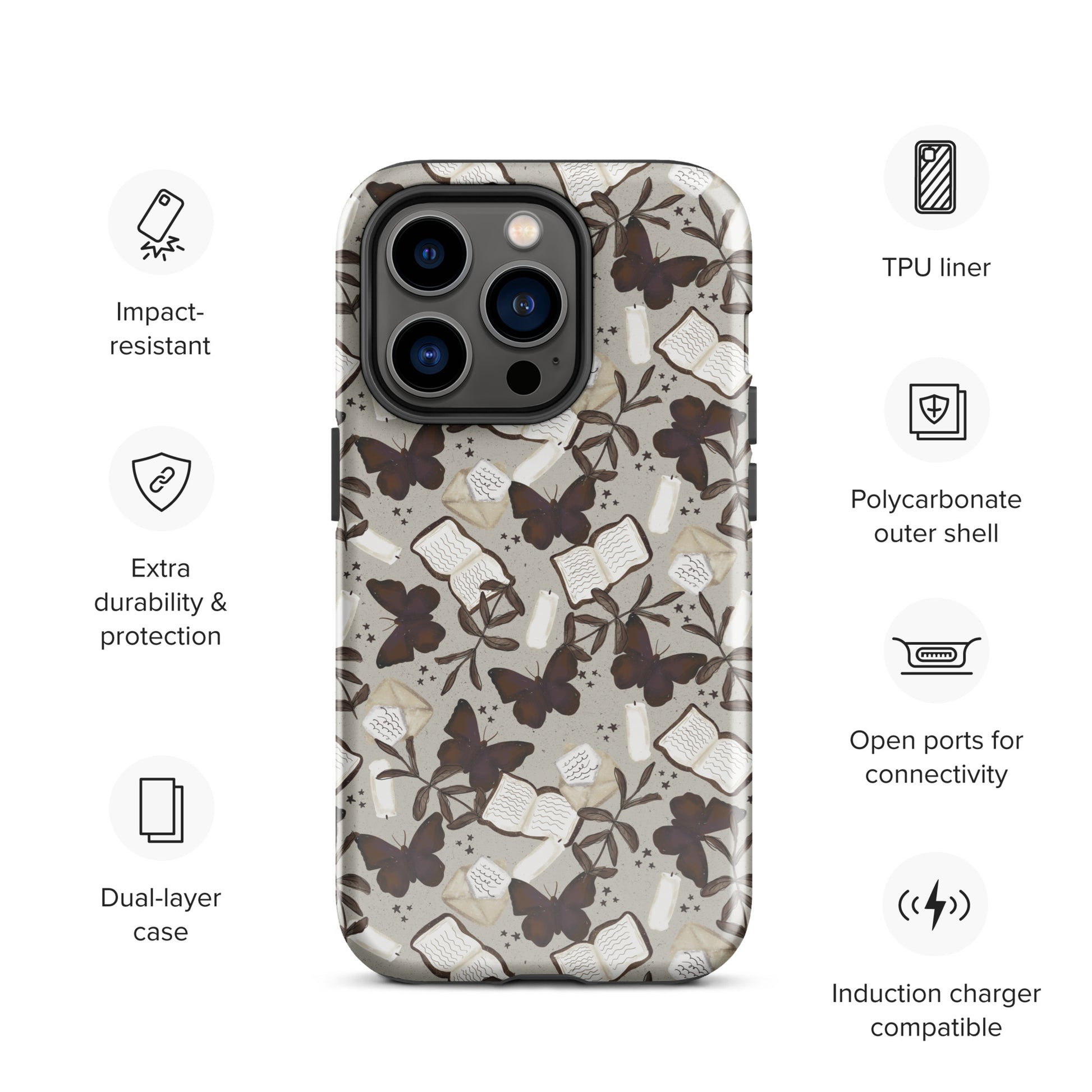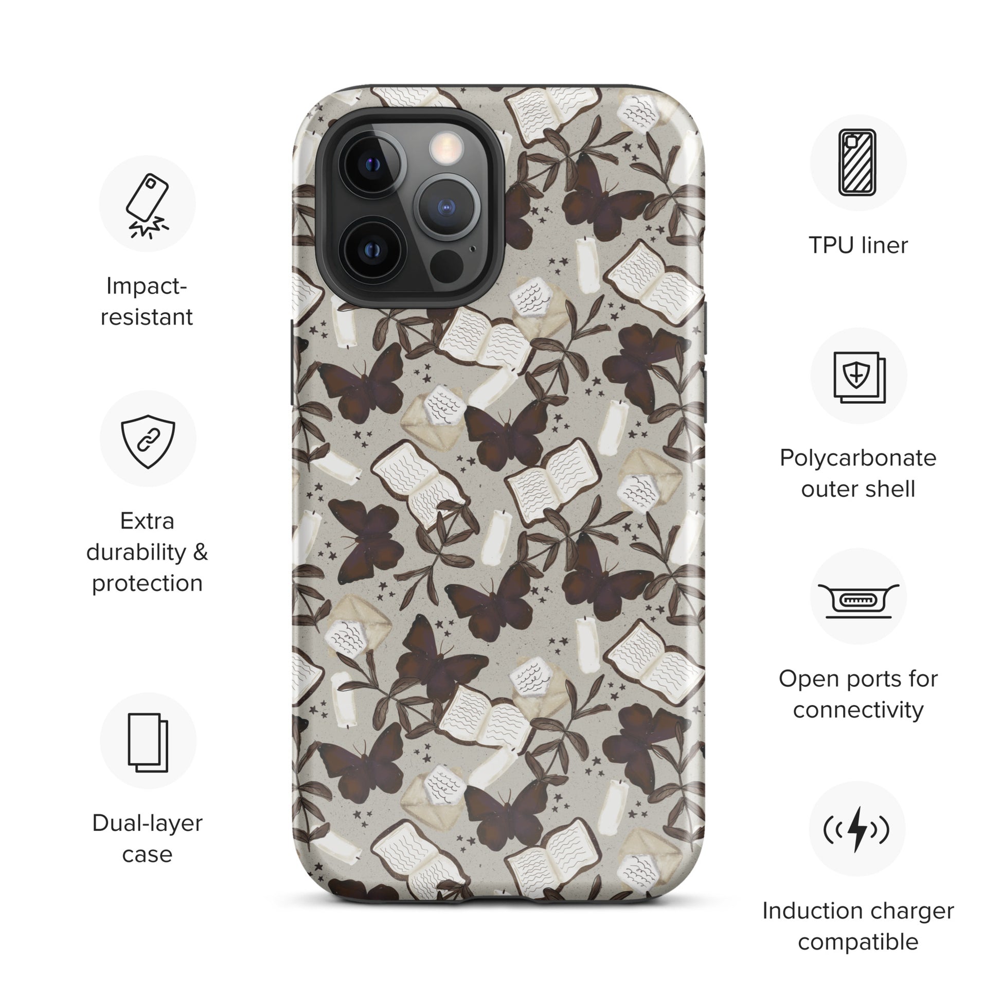 Add some fall fun to your phone with this cozy dark academia Iphone case! Protect your iPhone while showing off your spooky side. Perfect for book lovers and those who love a touch of spookiness in their daily lives.