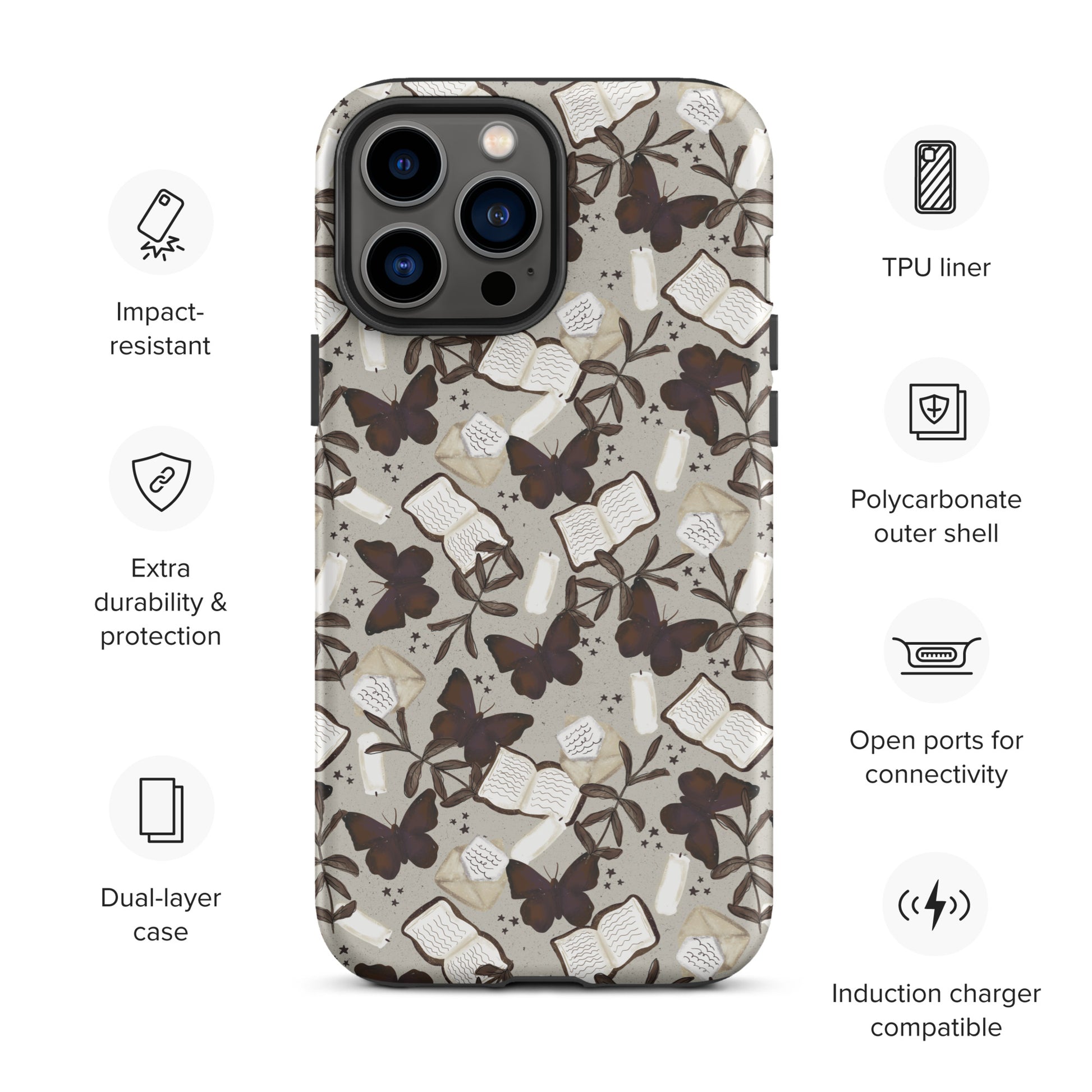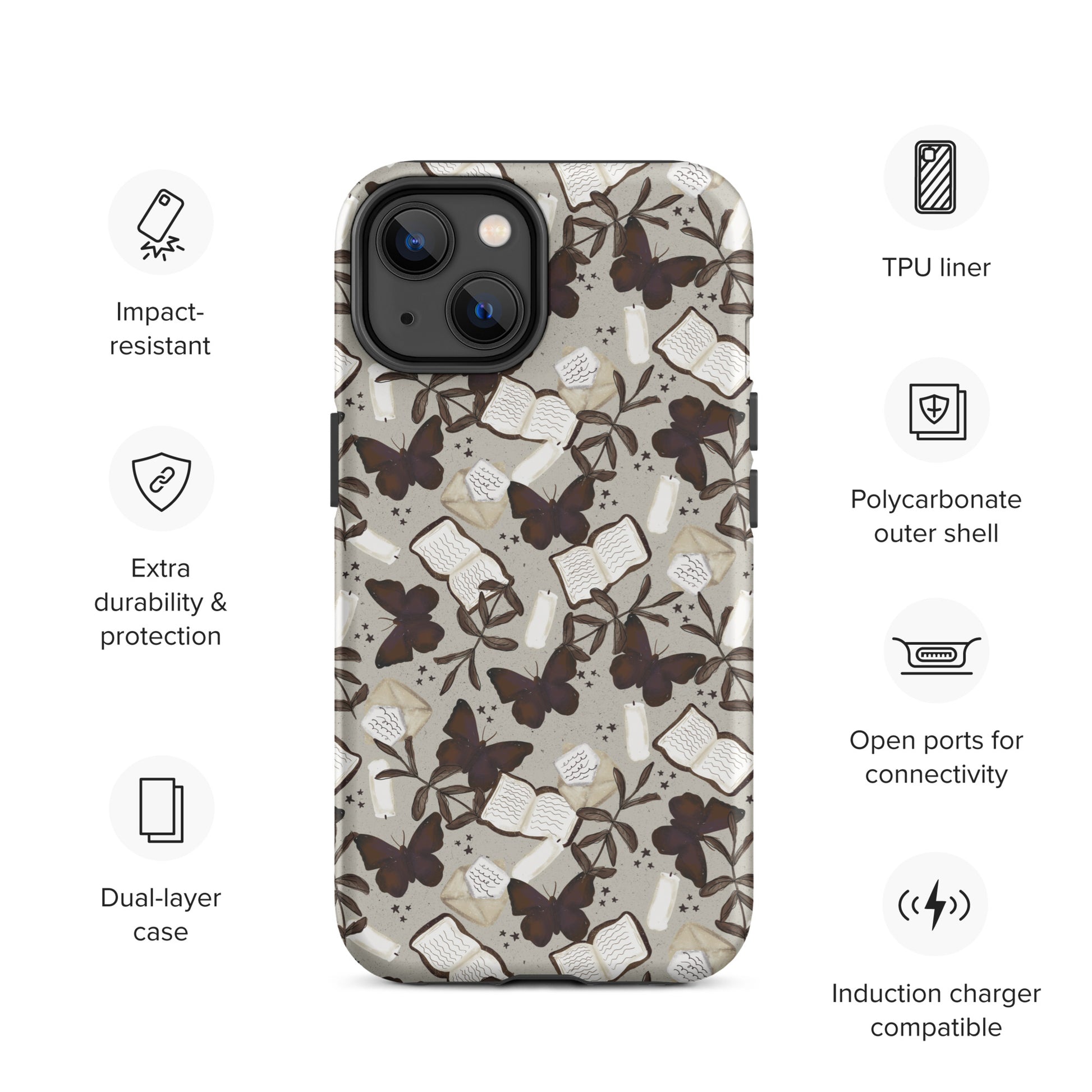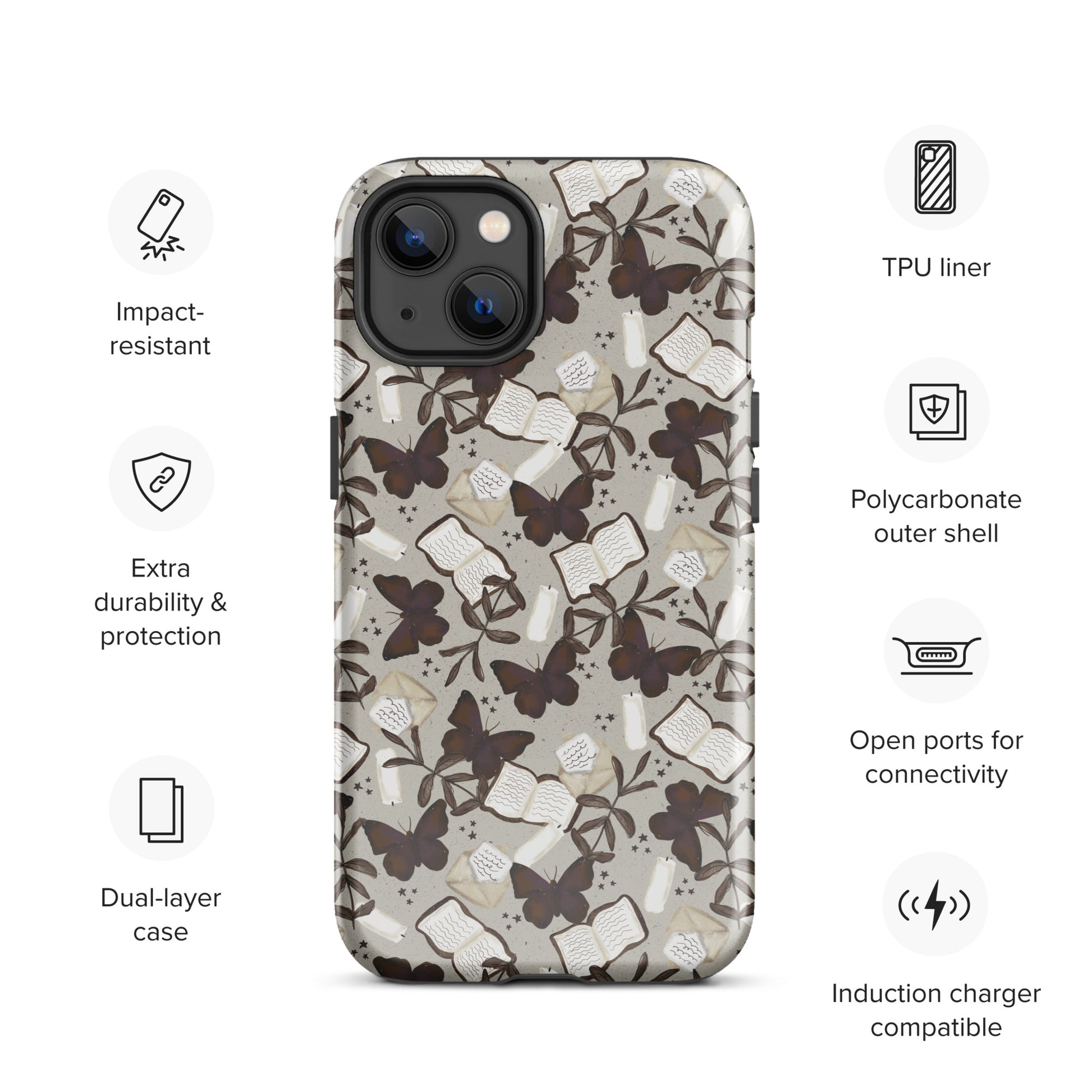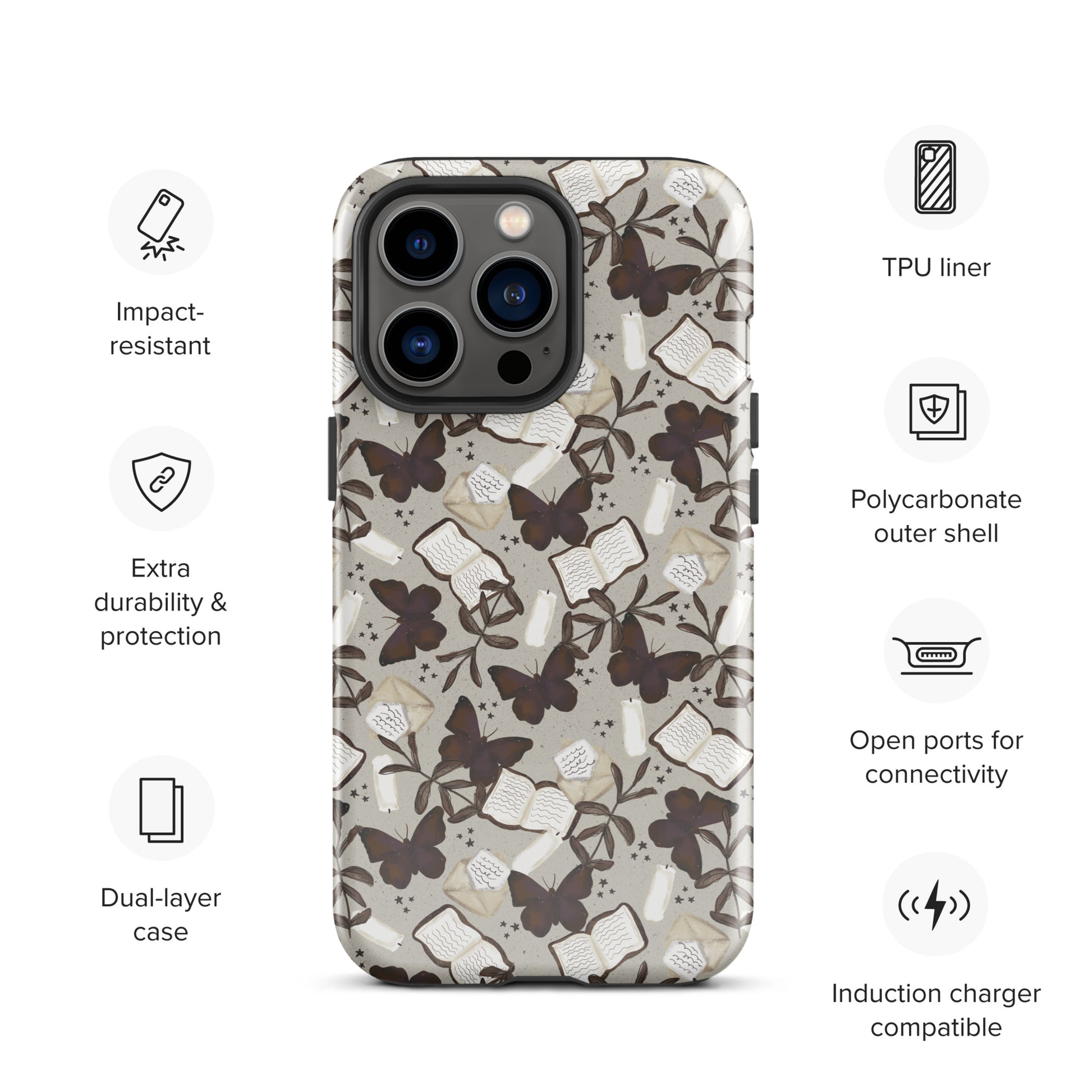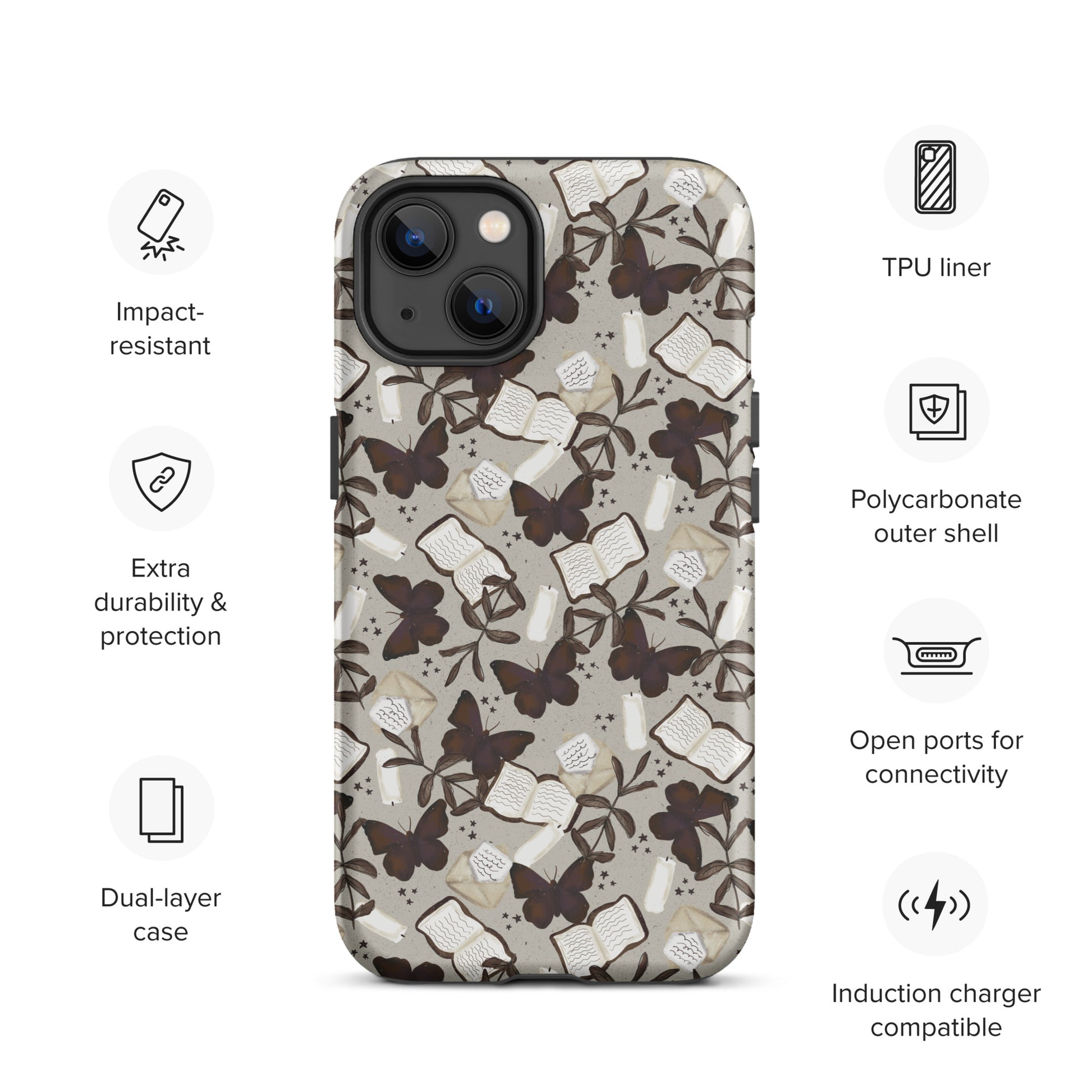 Add some fall fun to your phone with this cozy dark academia Iphone case! Protect your iPhone while showing off your spooky side. Perfect for book lovers and those who love a touch of spookiness in their daily lives.