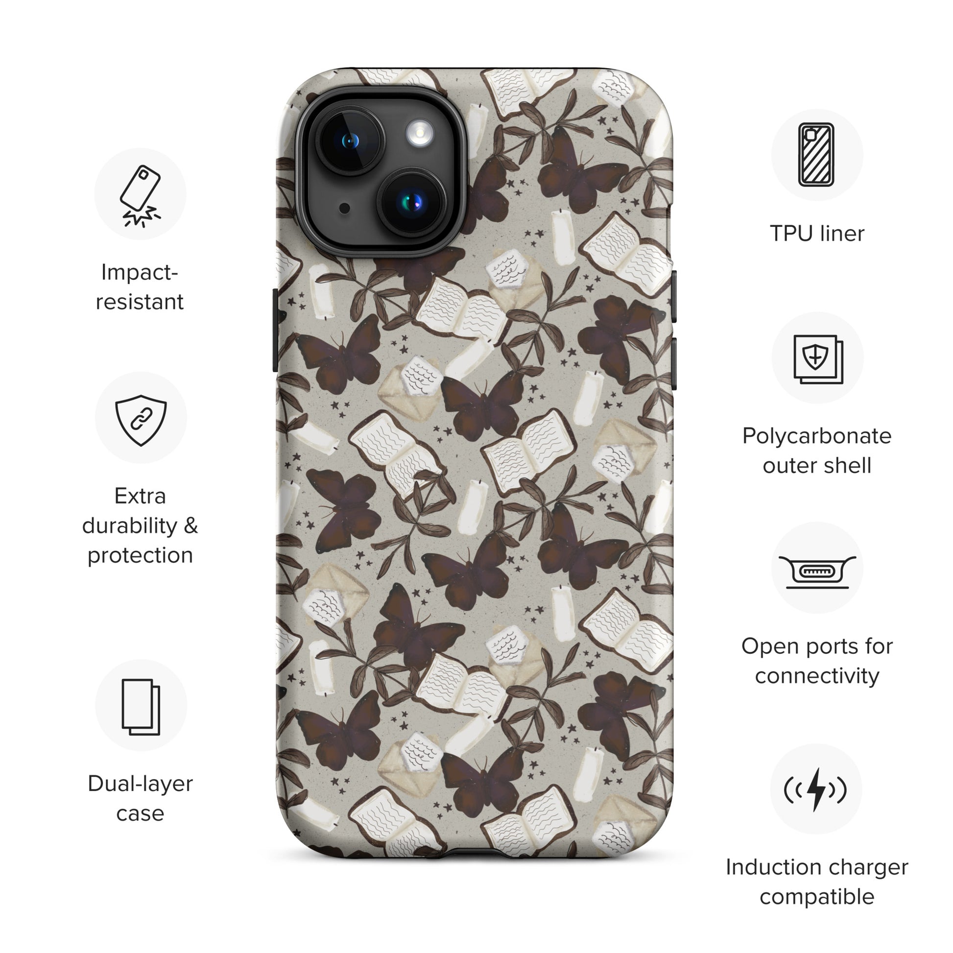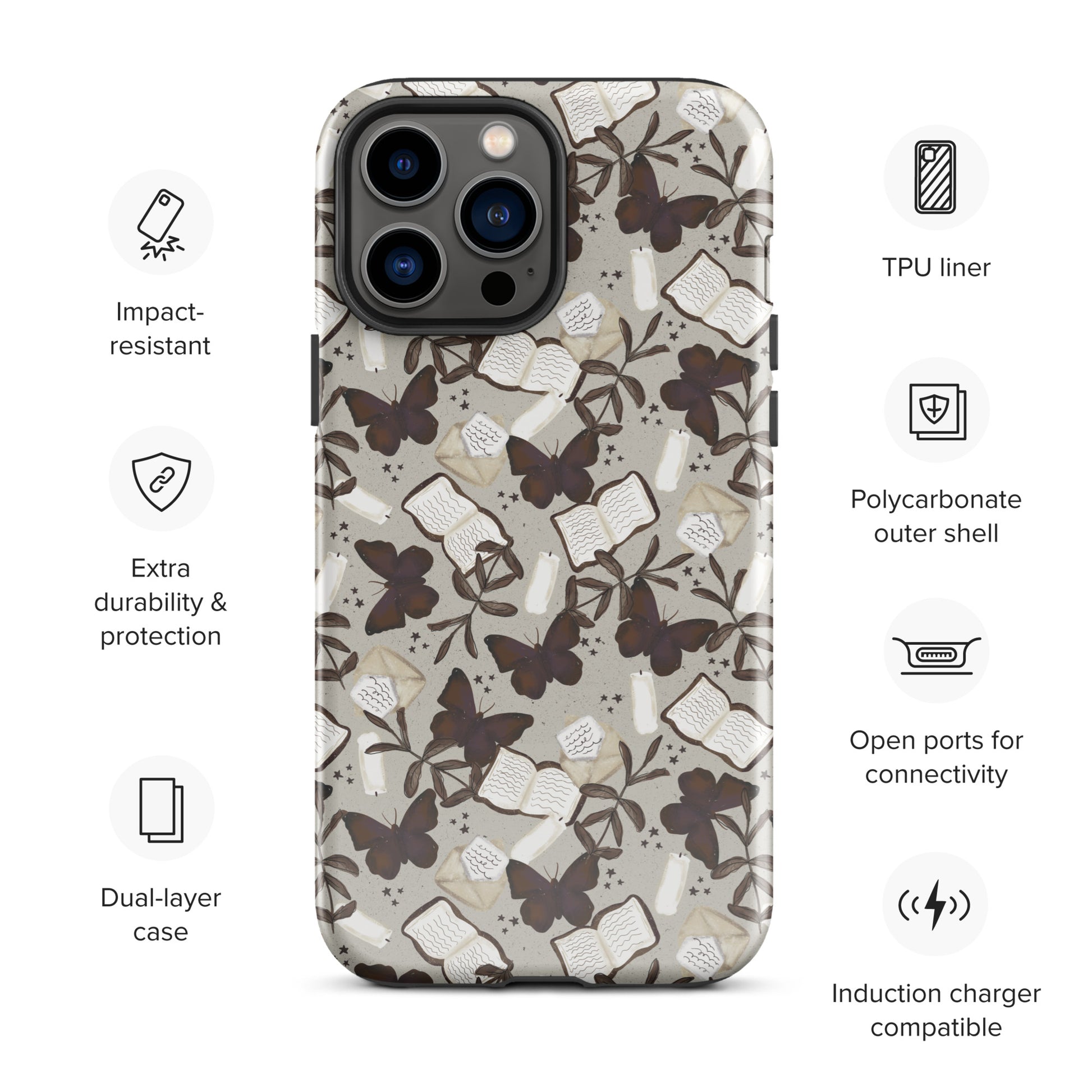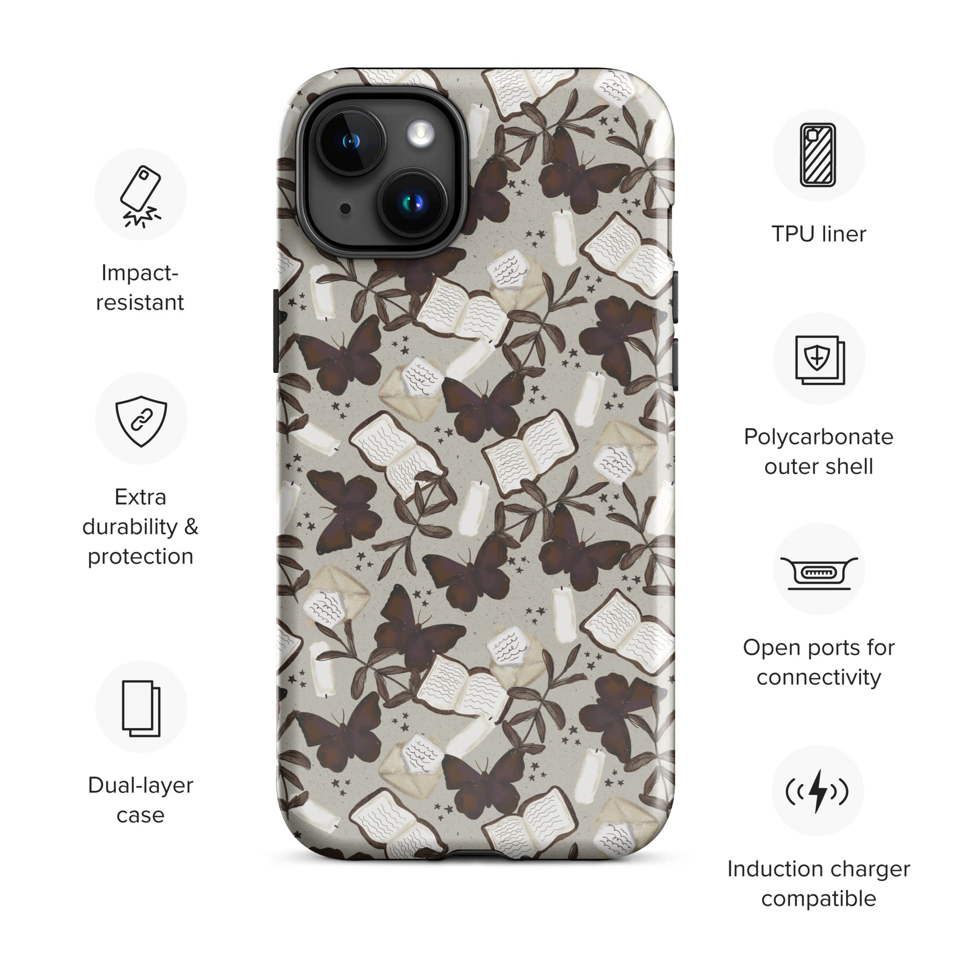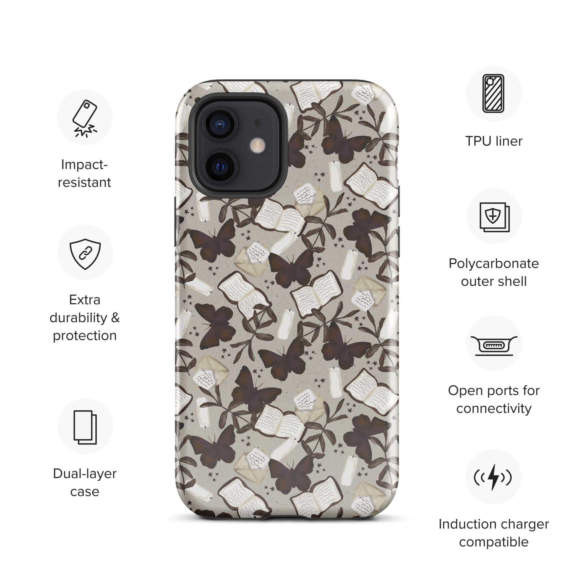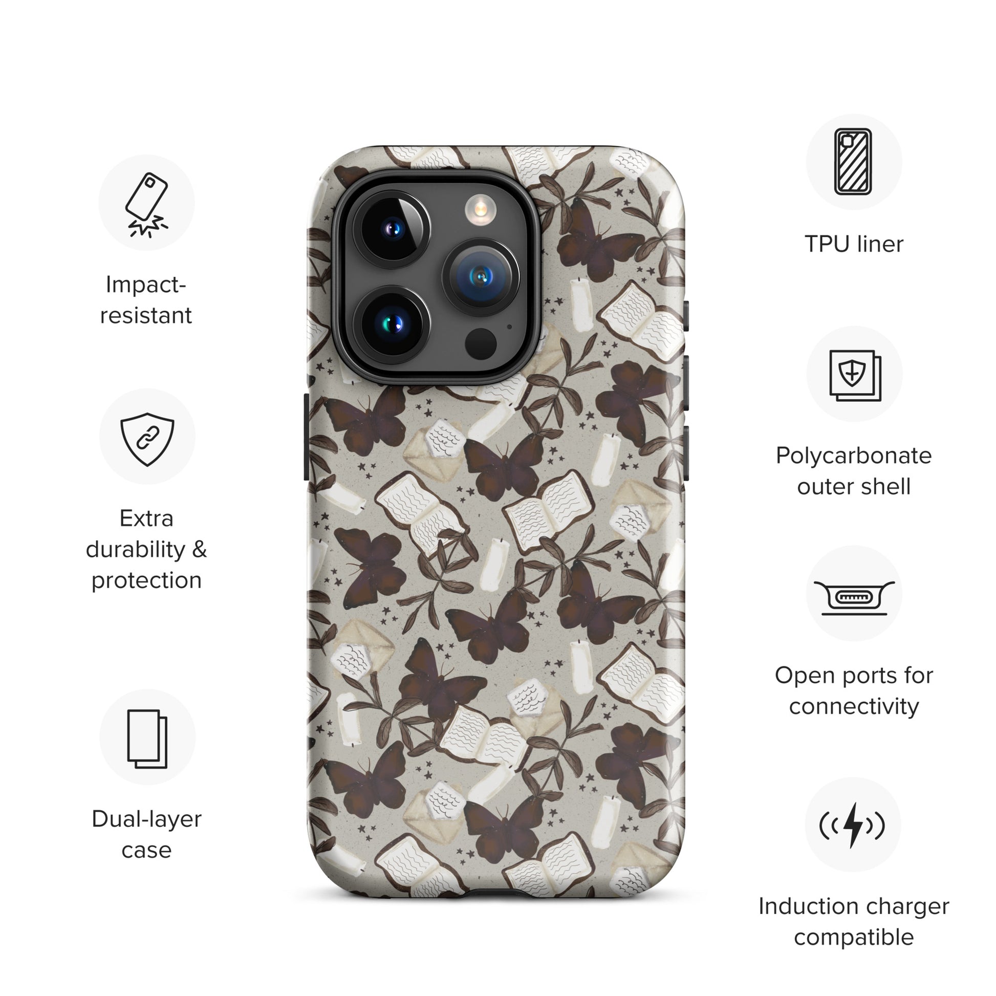 Add some fall fun to your phone with this cozy dark academia Iphone case! Protect your iPhone while showing off your spooky side. Perfect for book lovers and those who love a touch of spookiness in their daily lives.