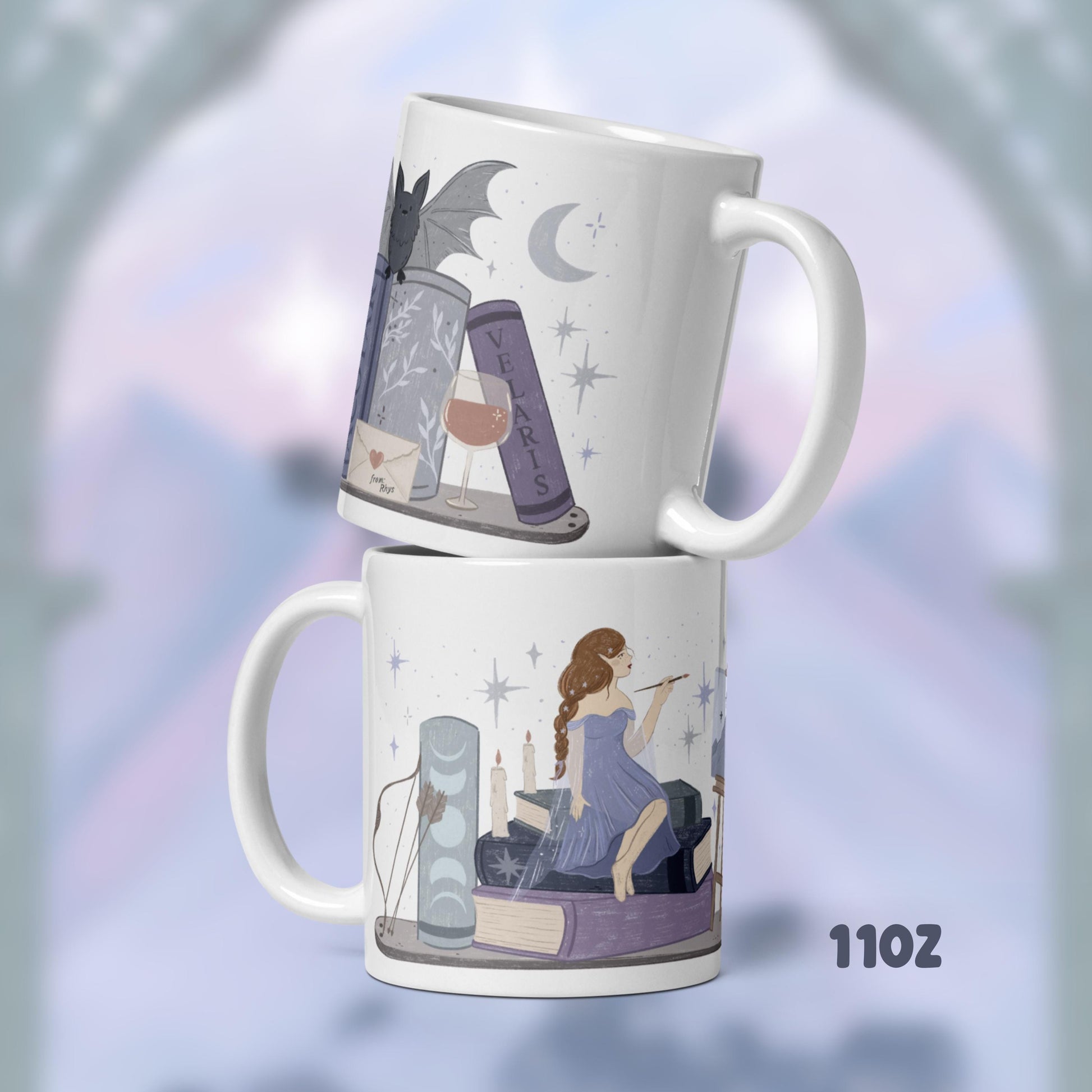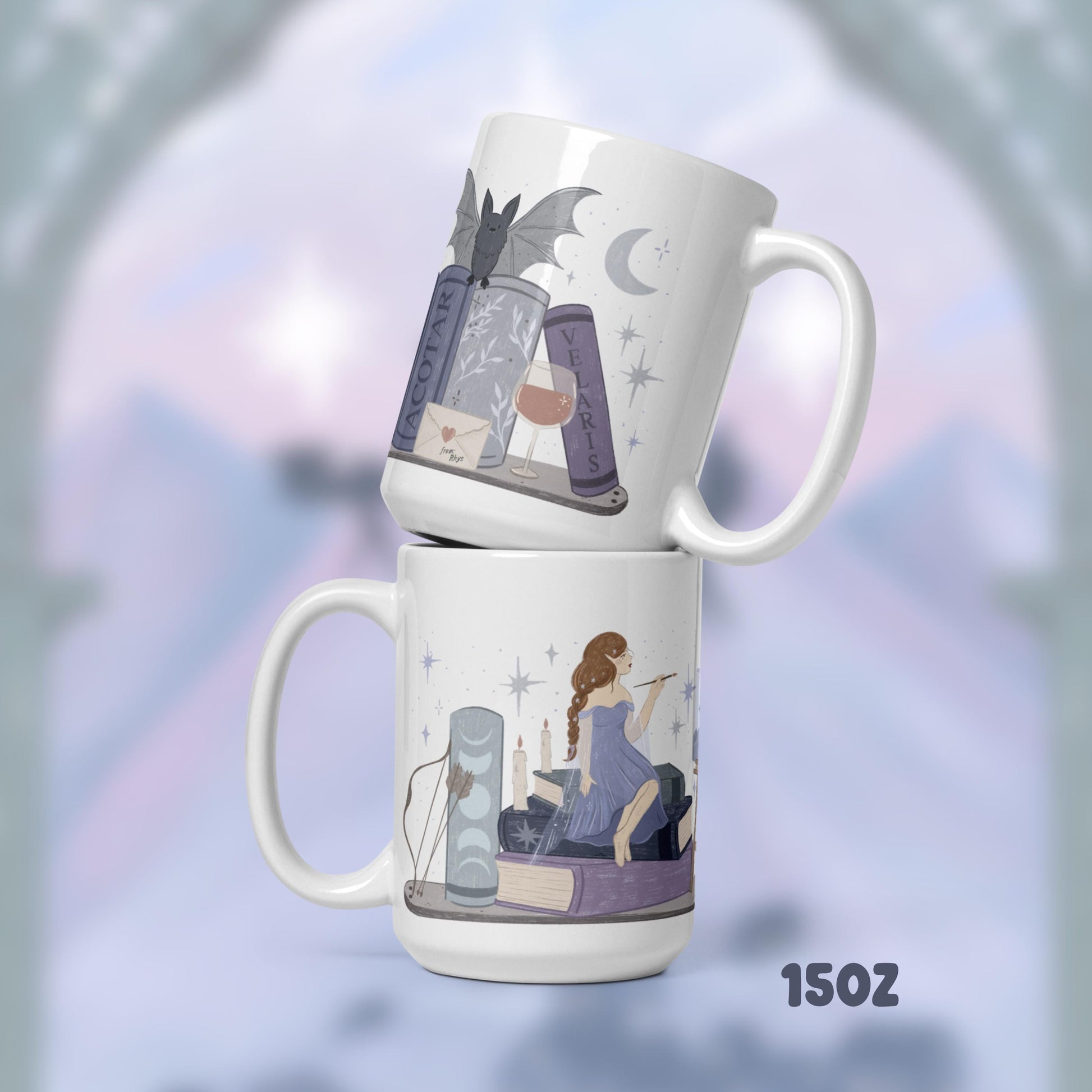 Feyre ACOTAR SJM Book Stack Mug, Fantasy Reader Coffee Cup, Bookish Gifts, Bookworm Accessories, Night Court Velaris, acotar fan art