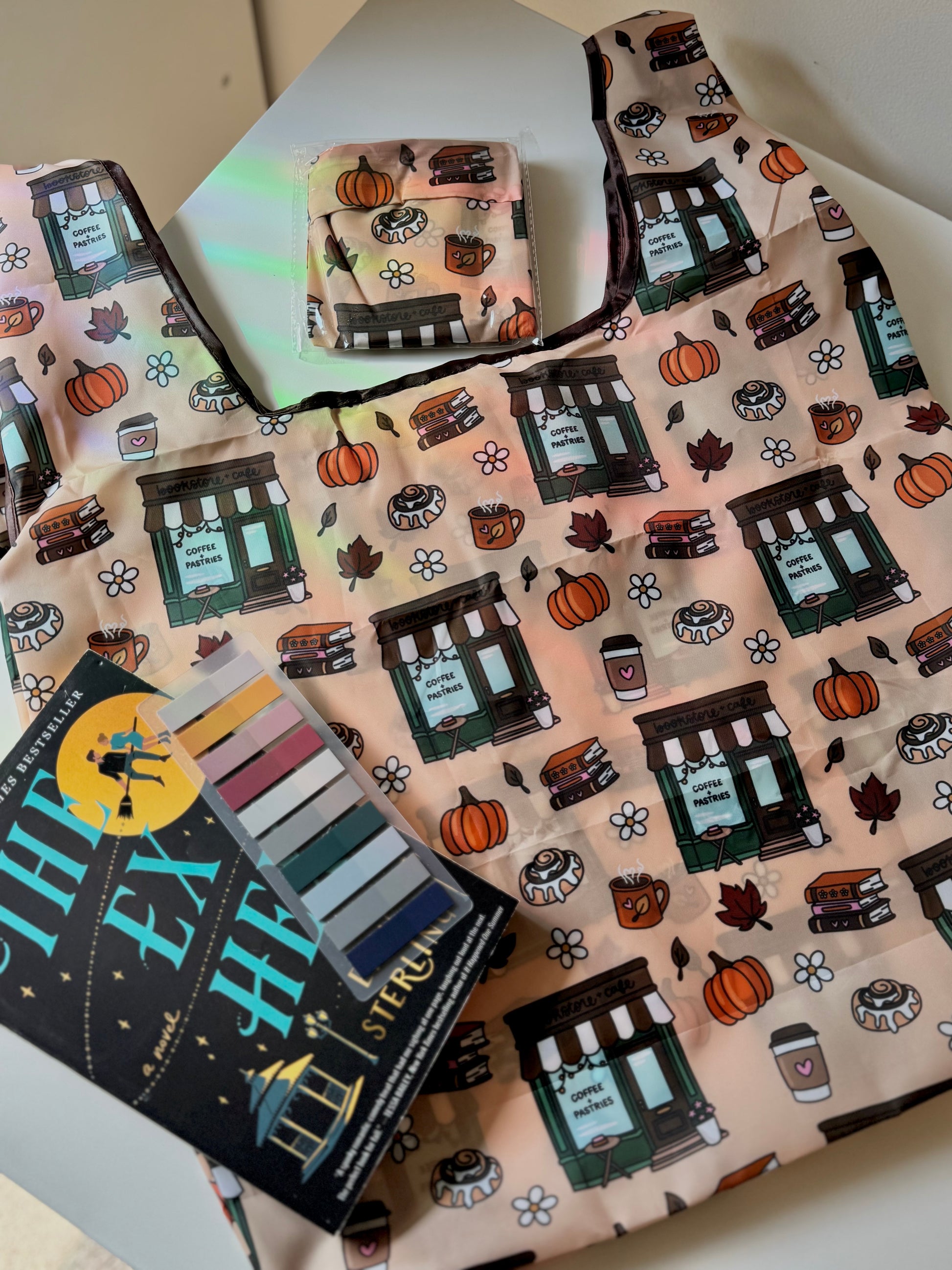Cozy Cinnamon Roll Bookshop Reusable Shopping Bag, Fold Up Pouch