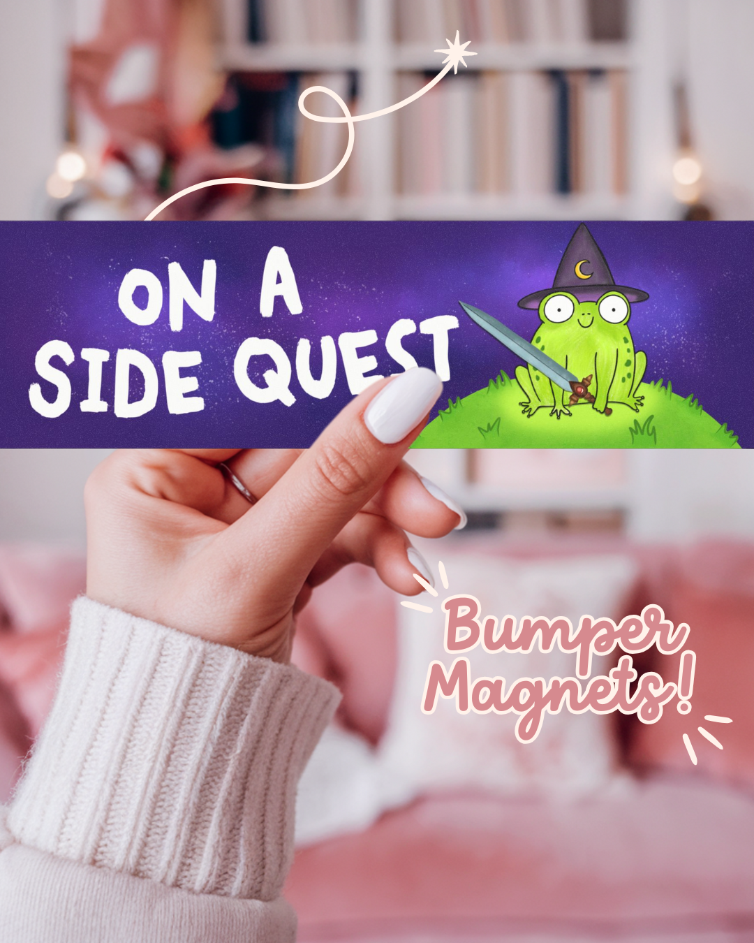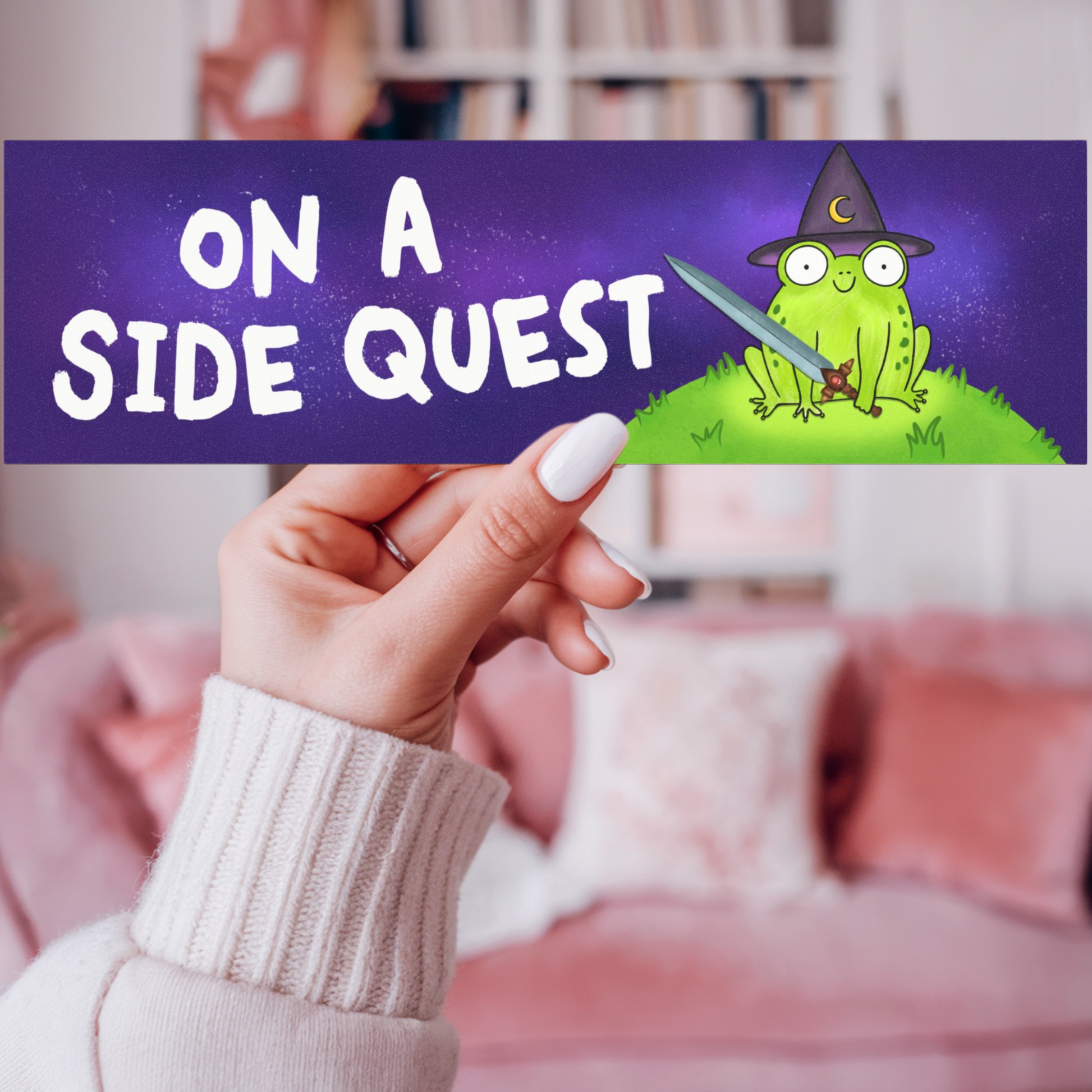 On A Side Quest Car Bumper Sticker Magnet, Cute Fantasy Frog Lover Magnet, ADHD Funny Bumper Magnet, Mystical Fantasy Reader Gift, DND Dungeon Master