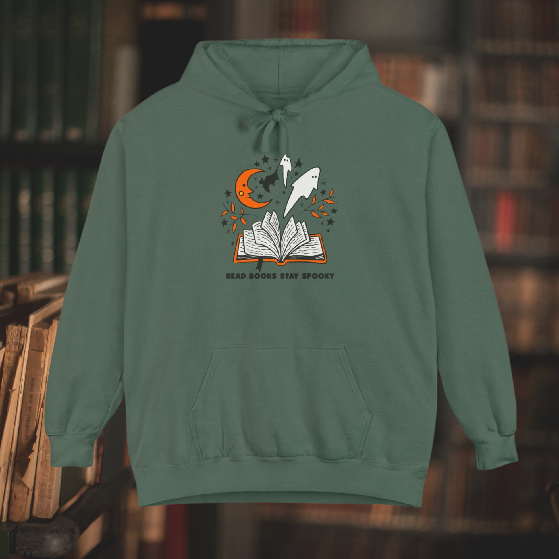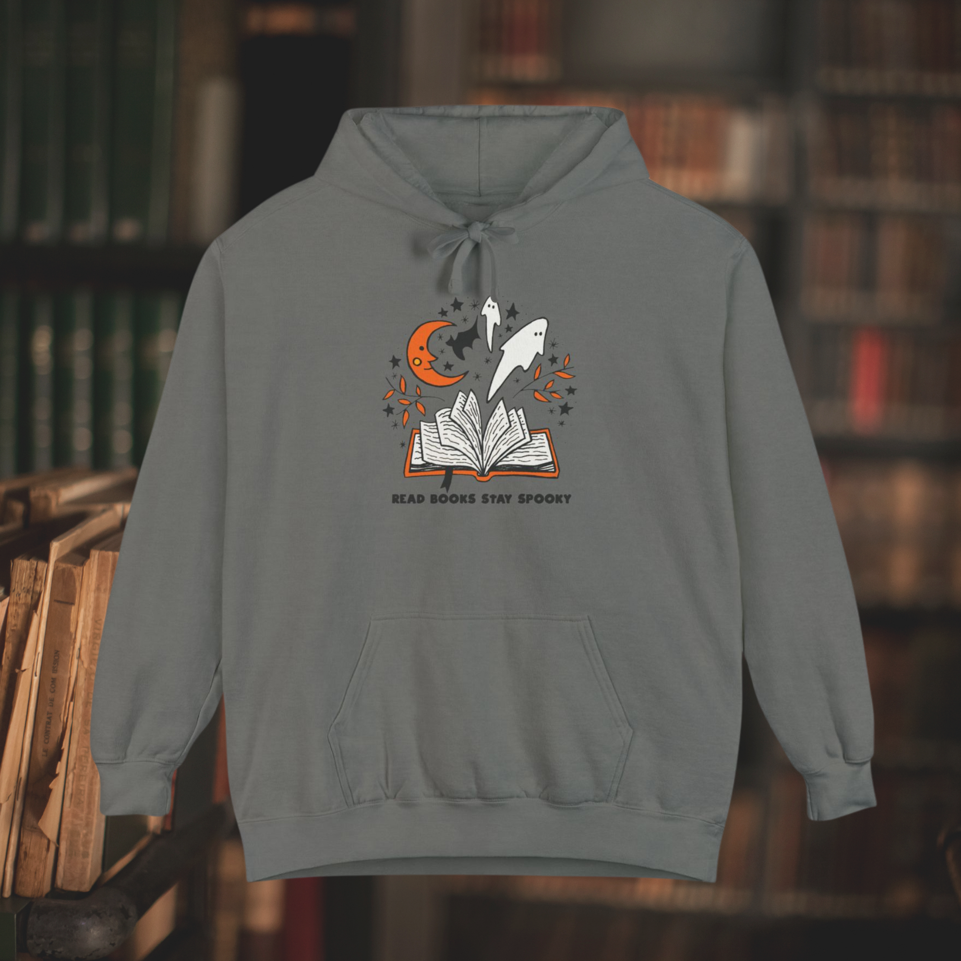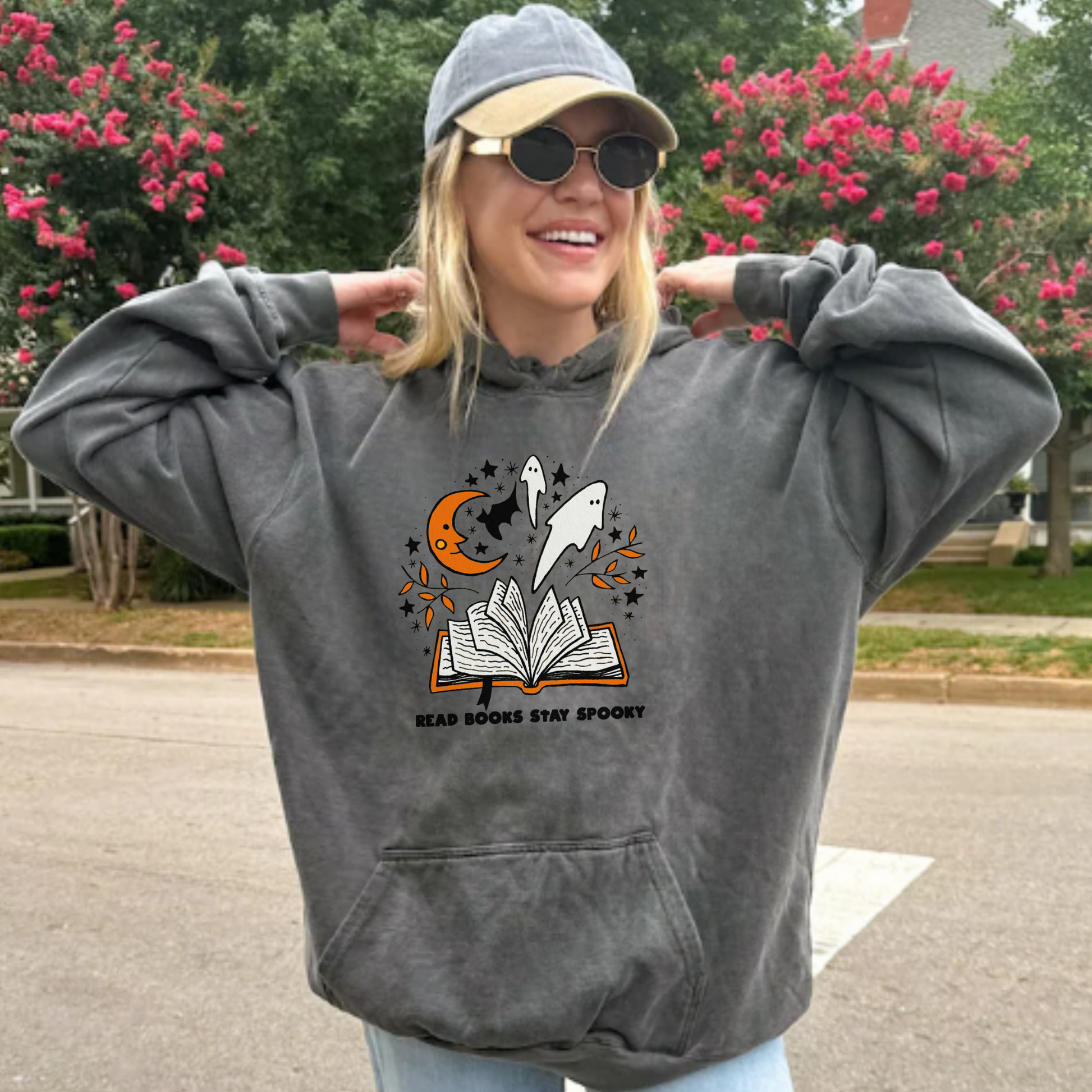 Be the comfiest (and spookiest) book lover around with this sweatshirt. Perfect for fall bookworms who love spooky cute vibes, this comfort colors hoodie is a must-have for any bookish Halloween festivities.