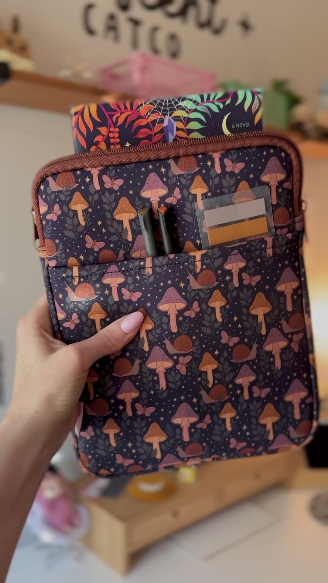 Magical Mushroom Book & Kindle Pouch, Zipper & Pocket ( Medium)