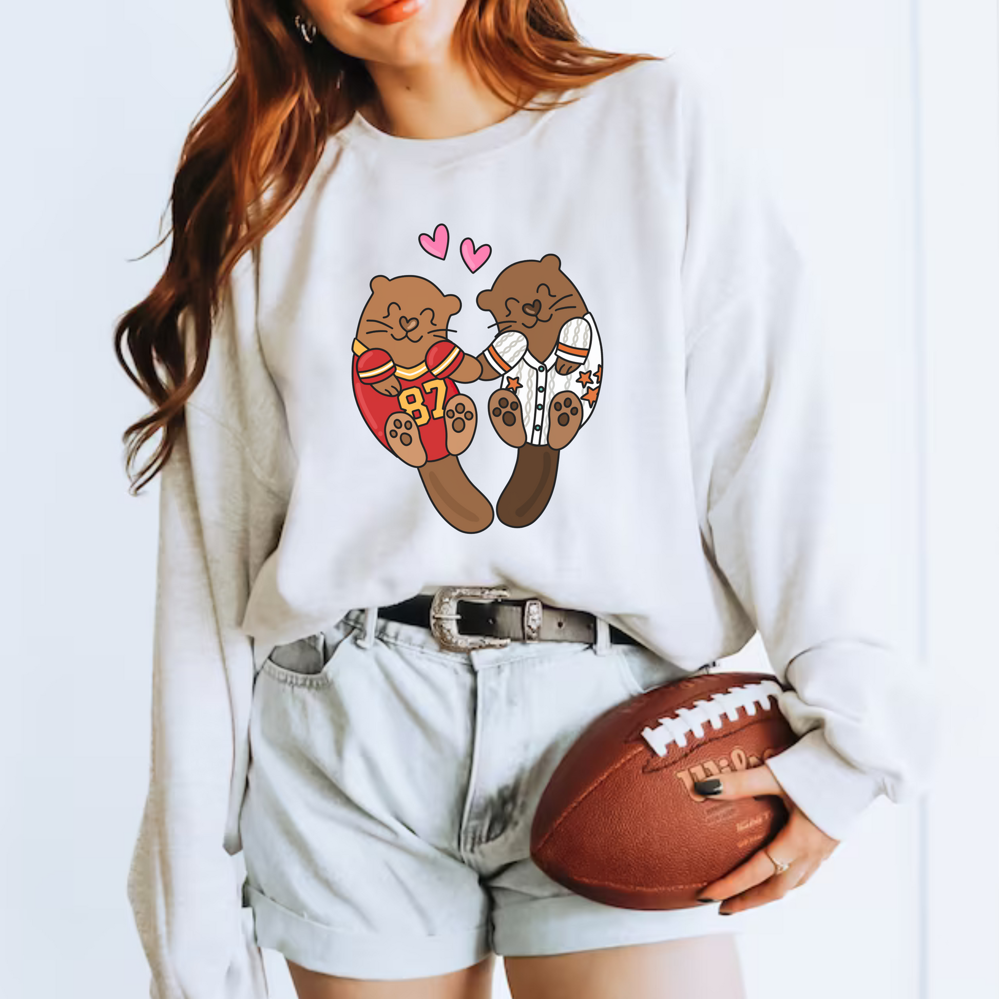 The football player & pop star otter crewneck. Perfect for cozy das, or possibly watching football!