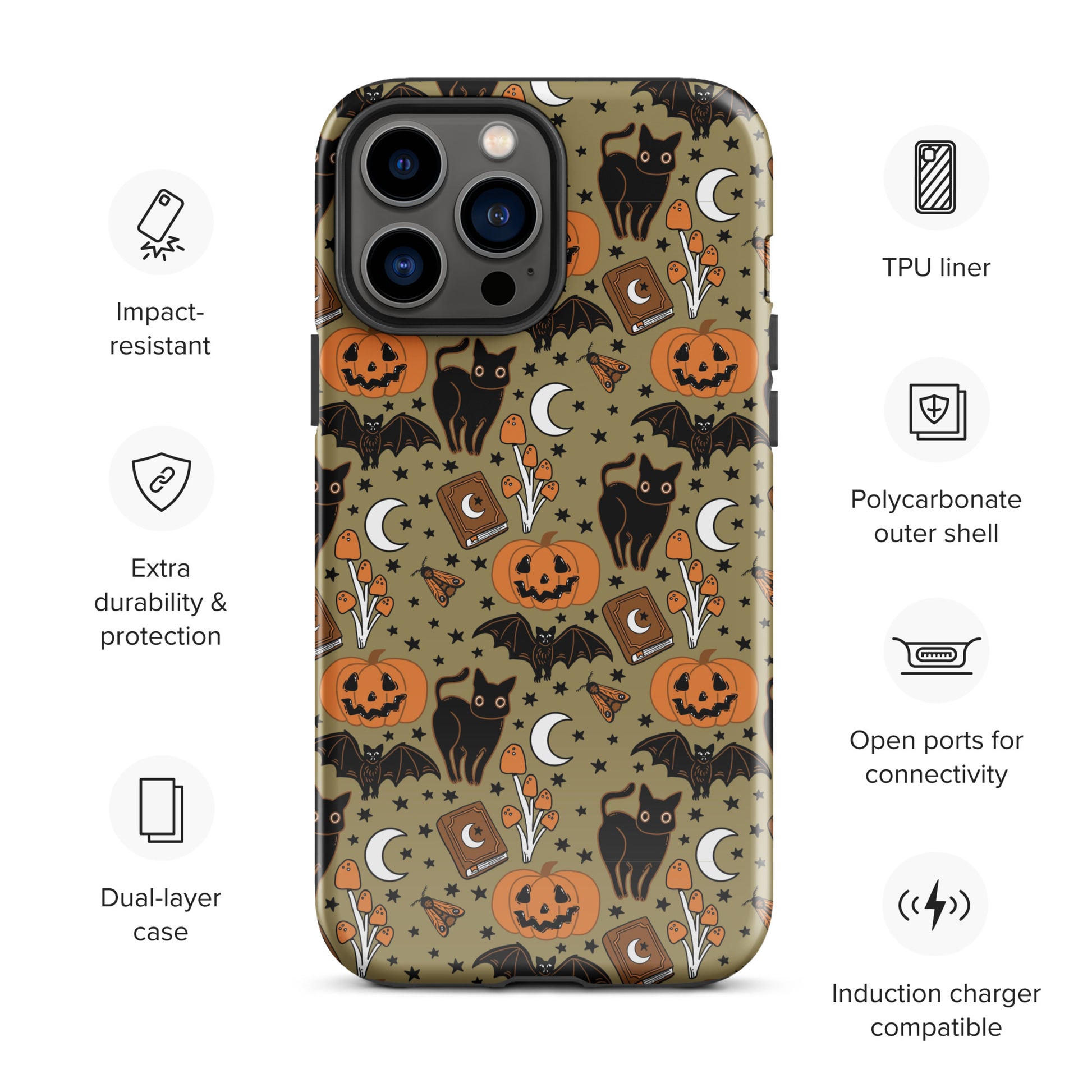 Vintage Halloween Spooky Black Cat and Pumpkin Tough Case for iPhone