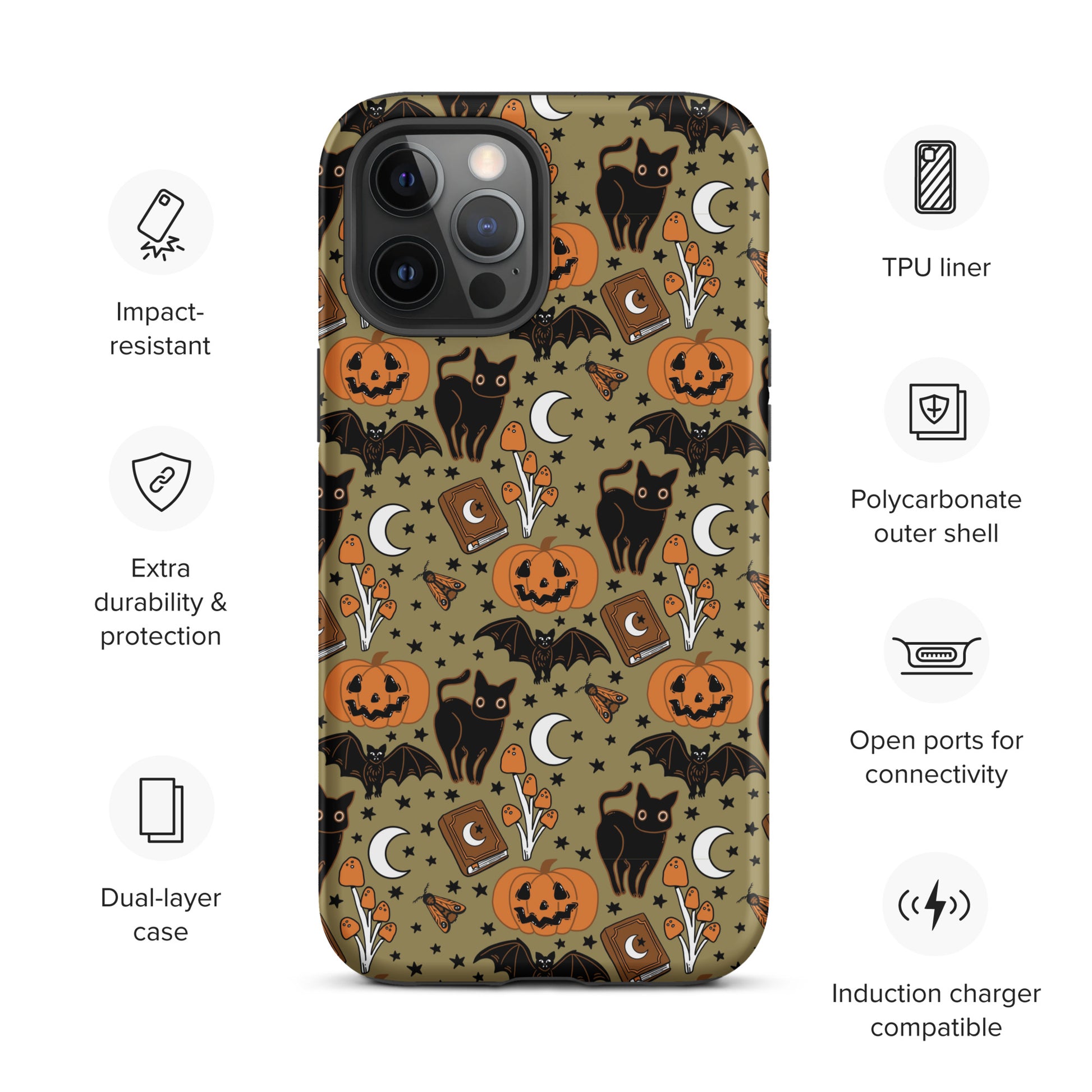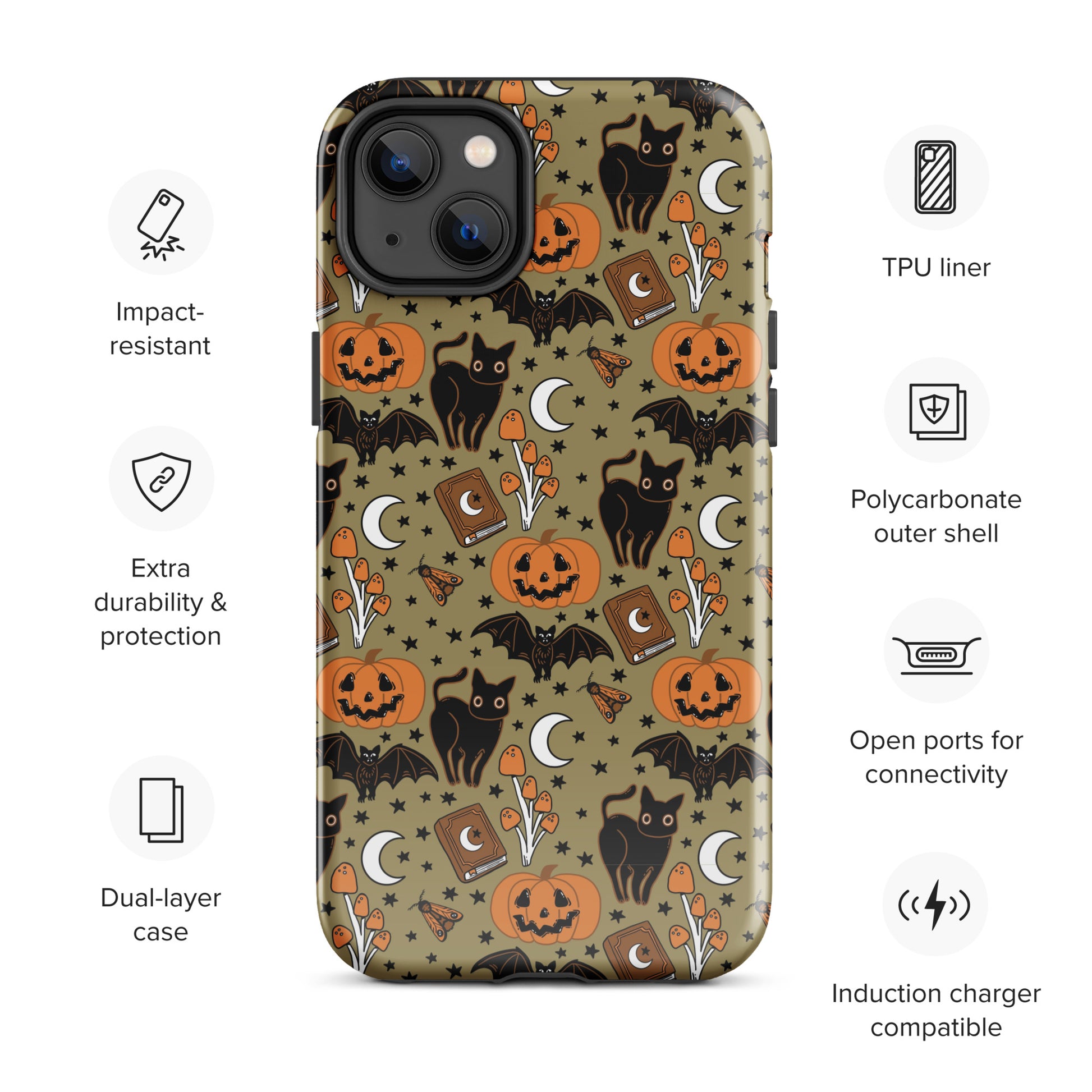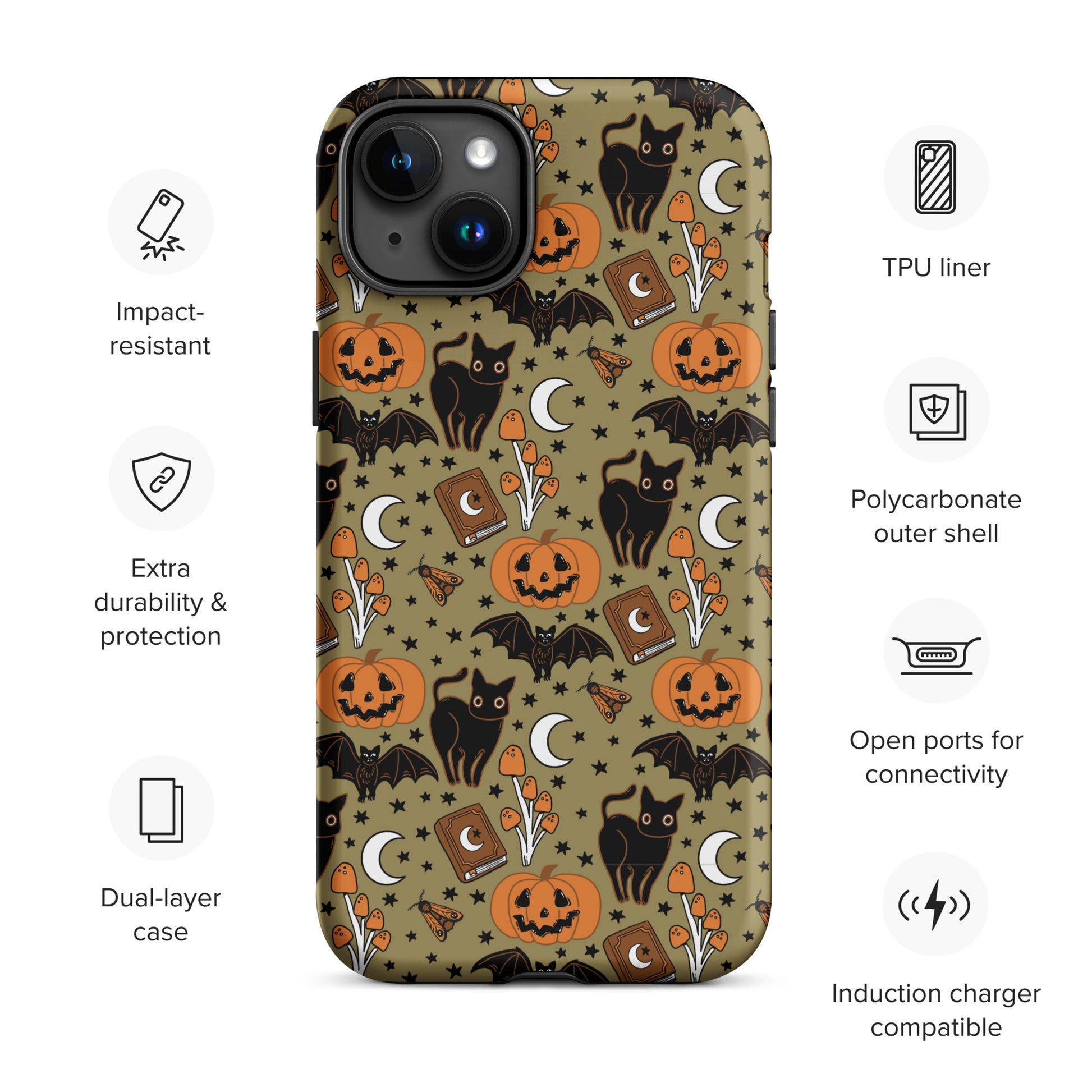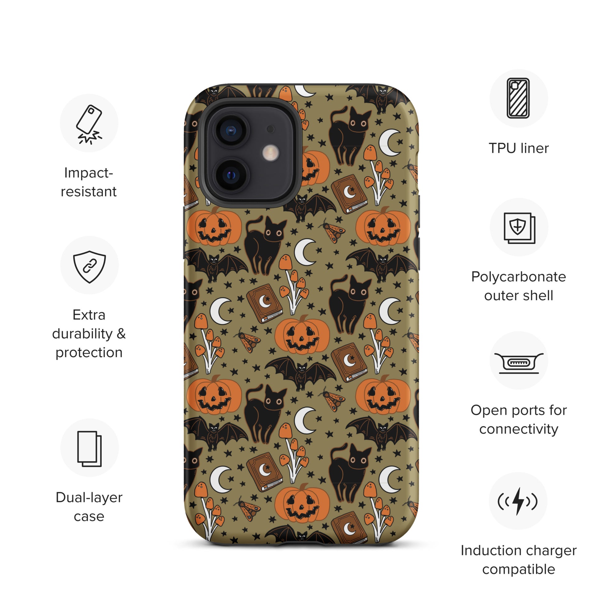 Add some fall fun to your phone with vintage spooky cute tough case! Protect your iPhone while showing off your spooky side. Perfect for fall lovers and those who love a touch of spookiness in their daily lives.