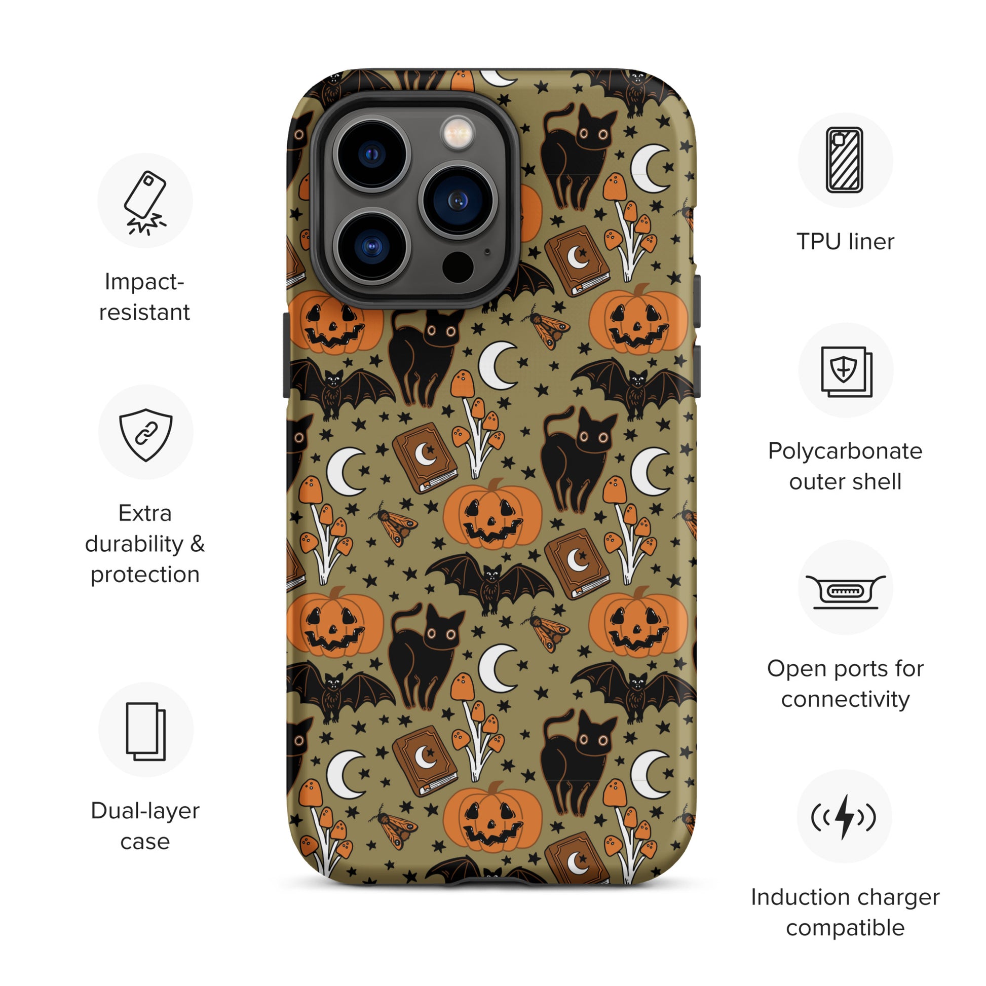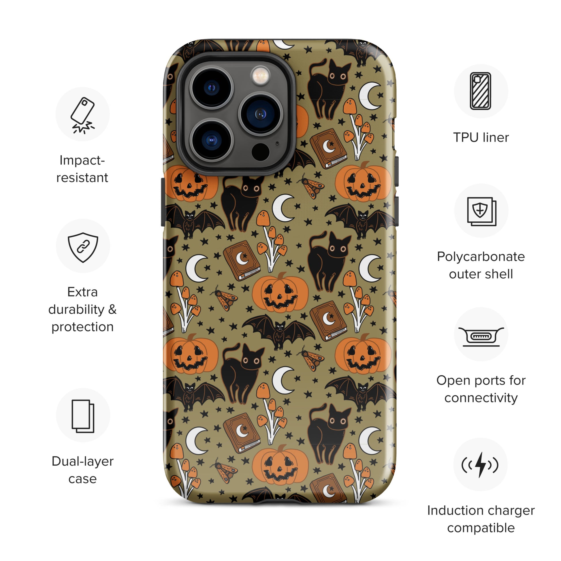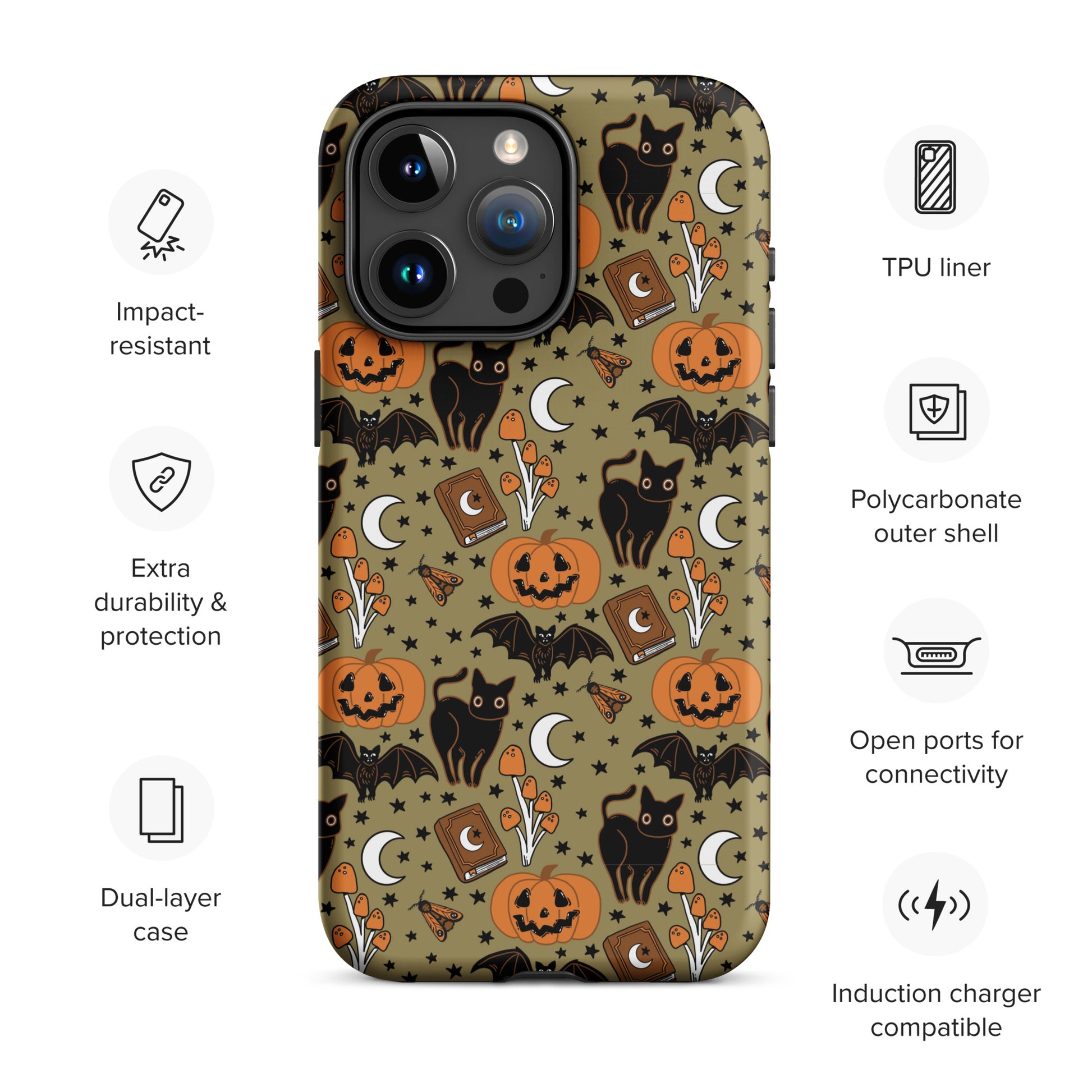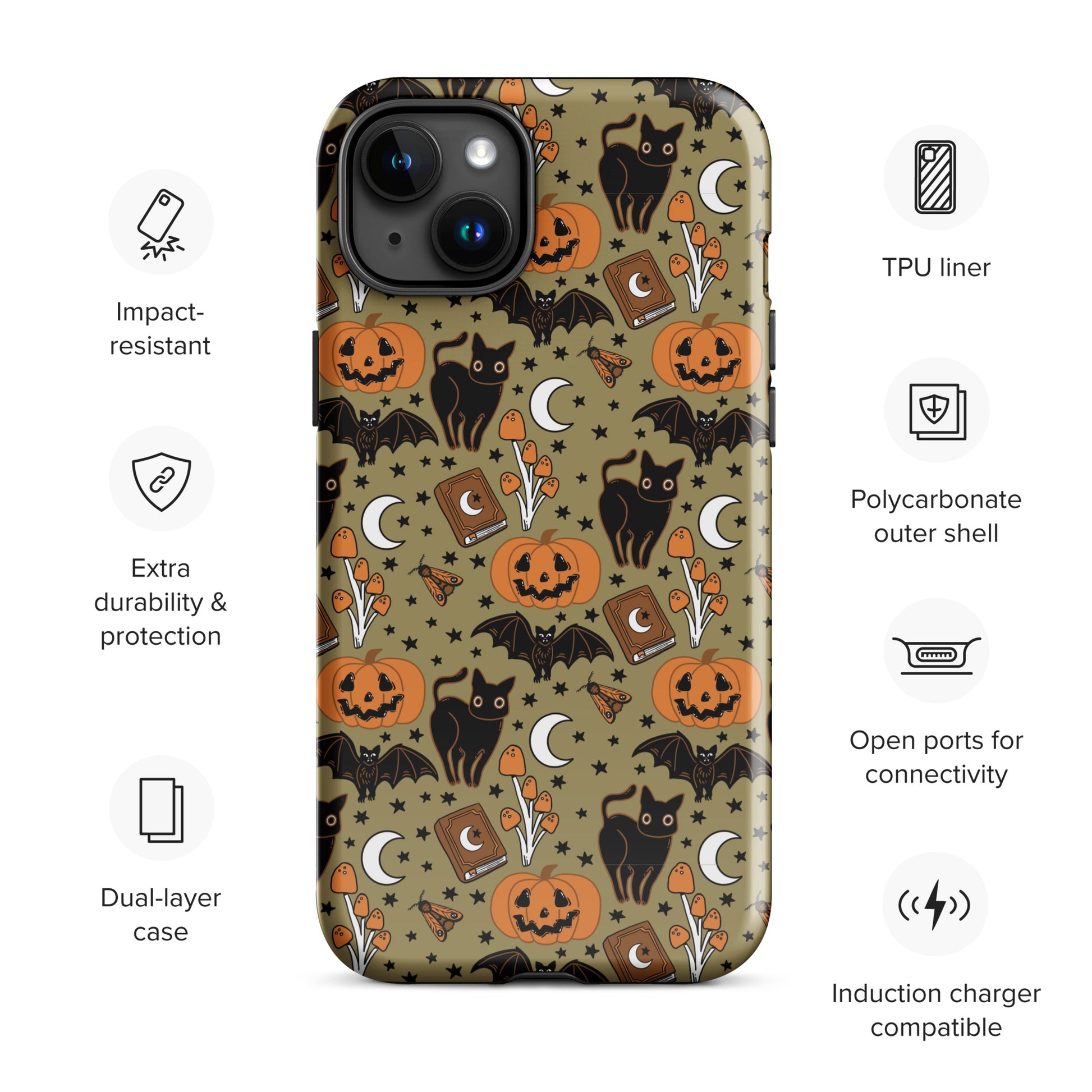 Add some fall fun to your phone with vintage spooky cute tough case! Protect your iPhone while showing off your spooky side. Perfect for fall lovers and those who love a touch of spookiness in their daily lives.
