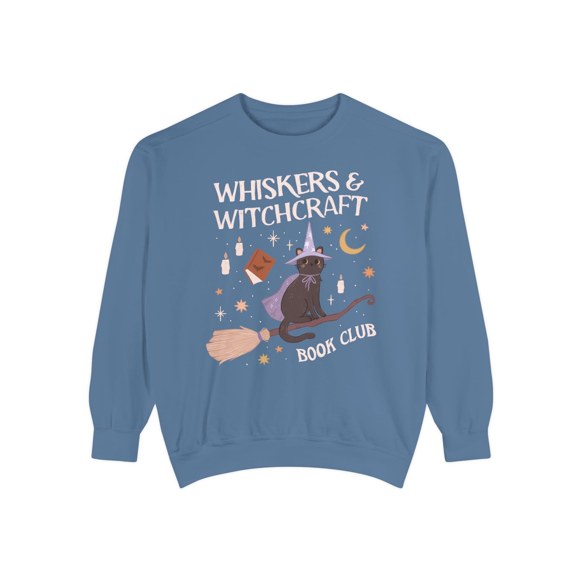 Whiskers and Witchcraft Book Club Crewneck - Witchy Bookish Halloween Comfort Colors Sweatshirt